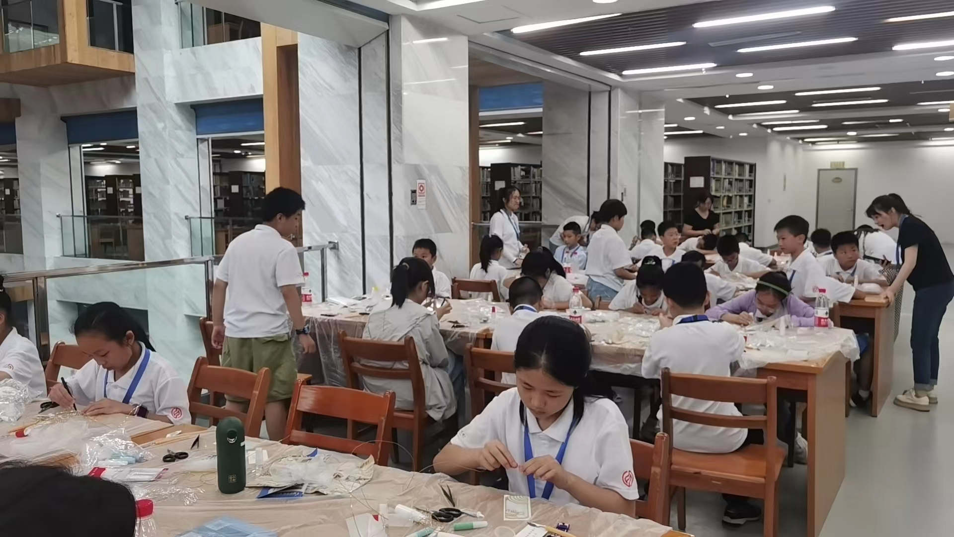 同学们在图书馆制作掐丝珐琅书签
