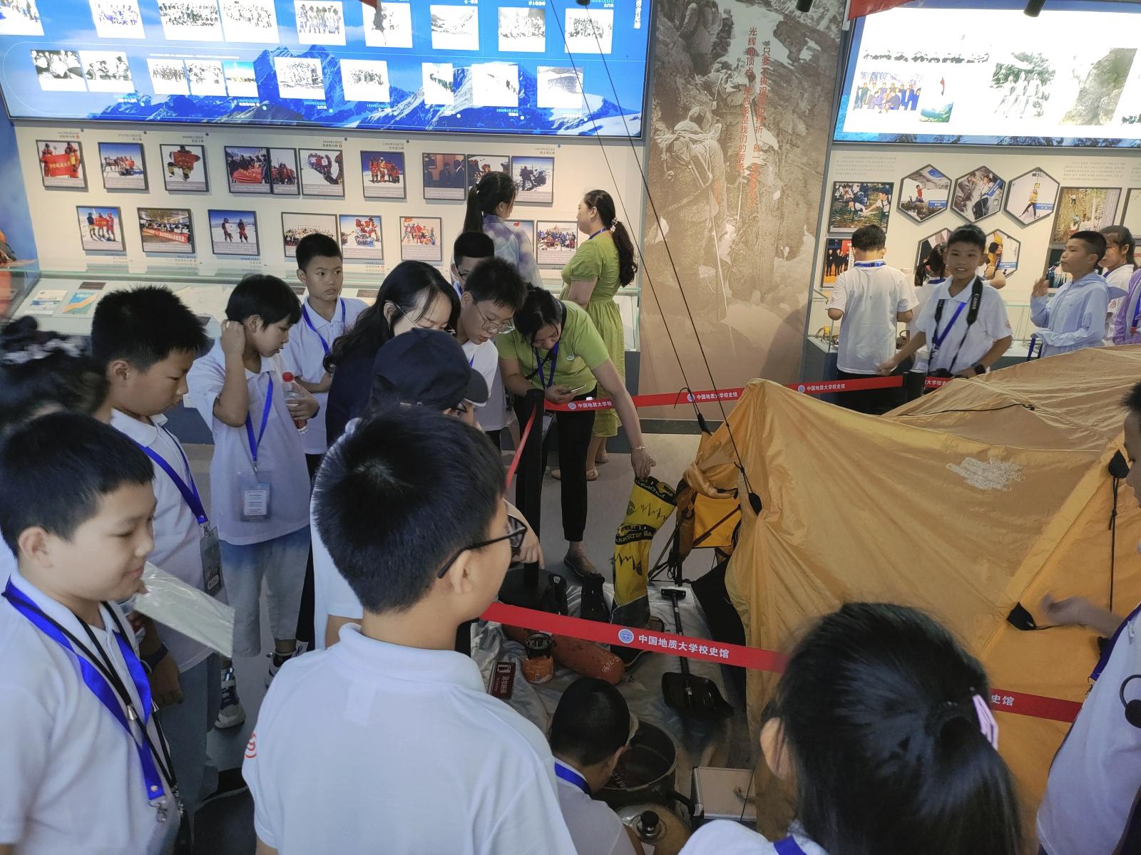 同学们在校史馆《攀峰登极印卓越展厅》参观