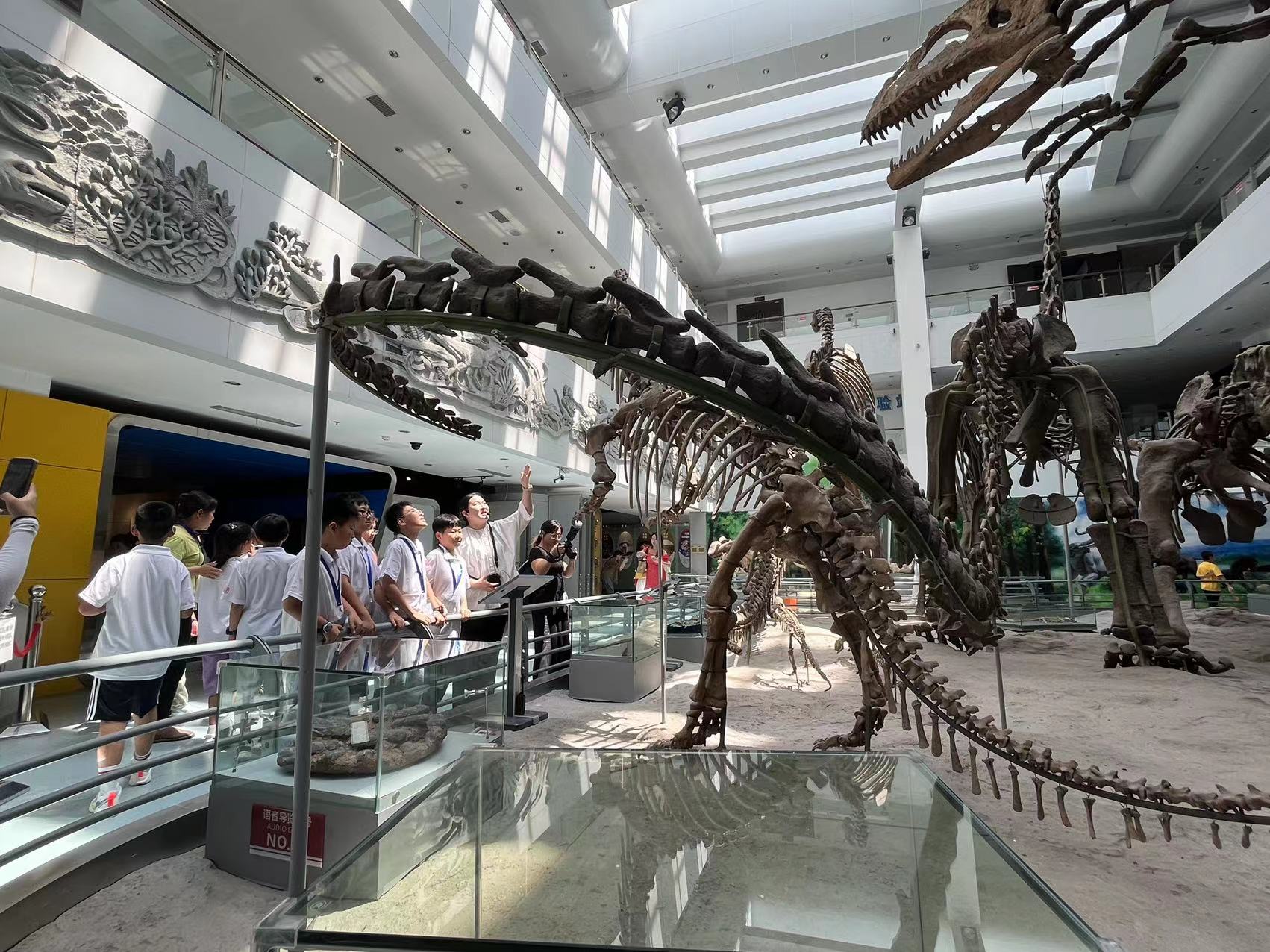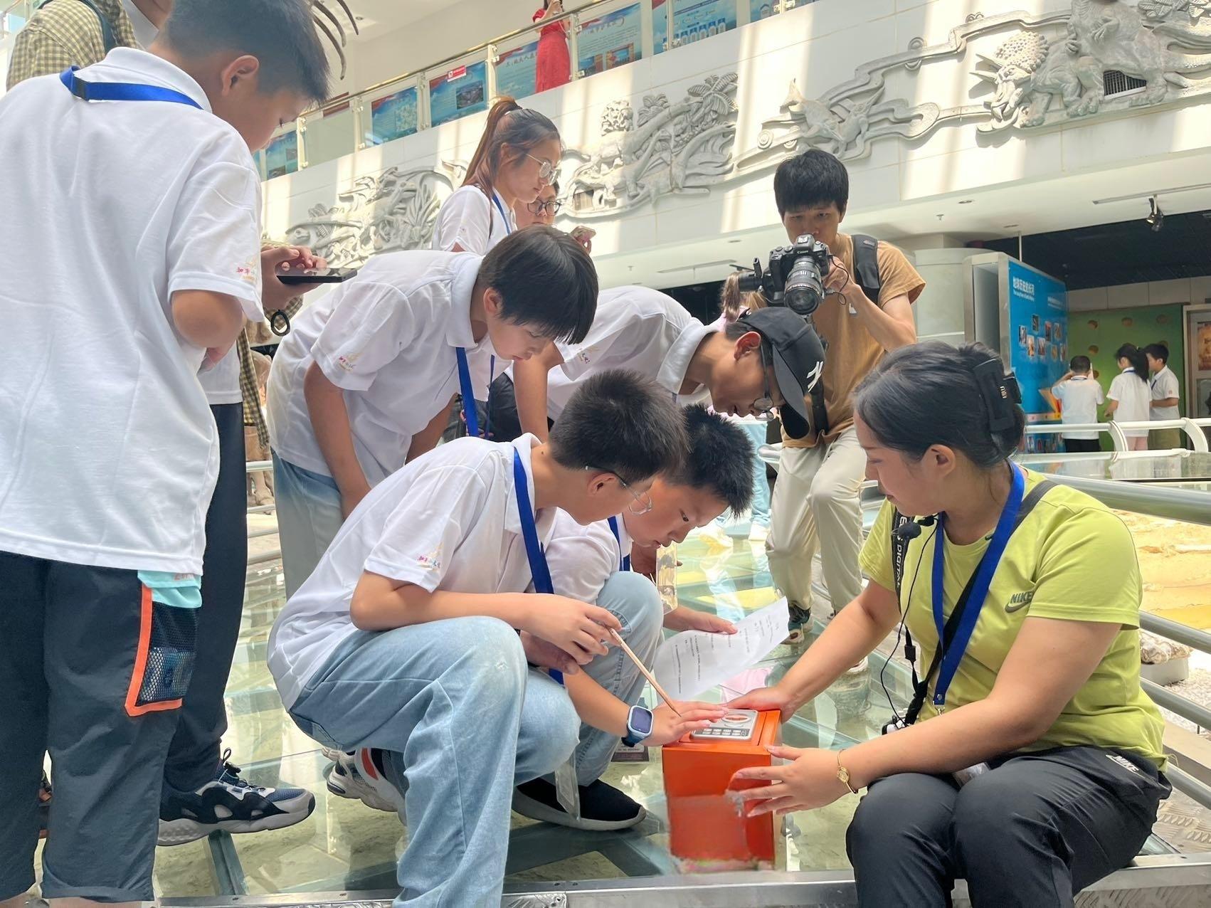 同学们在博物馆上科普课