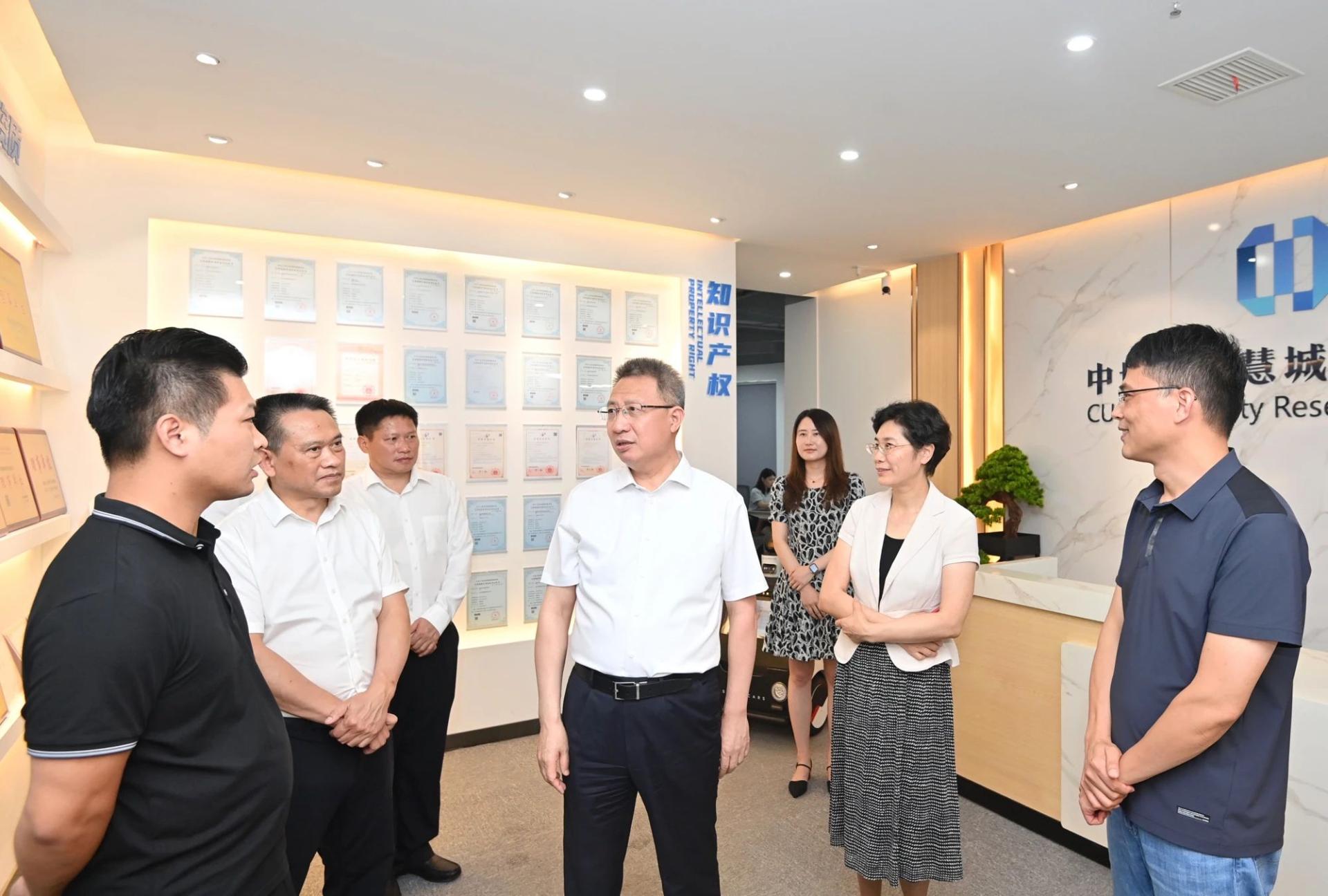 在武汉中opta足球智慧城市研究院有限公司,郭元强听取了智慧城市服务体系在住建、水利、国土资源、农业、政务、应急、城管、气象、地质、生态环境等项目案例汇报。