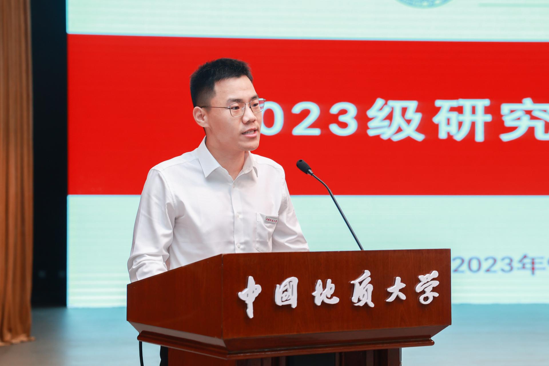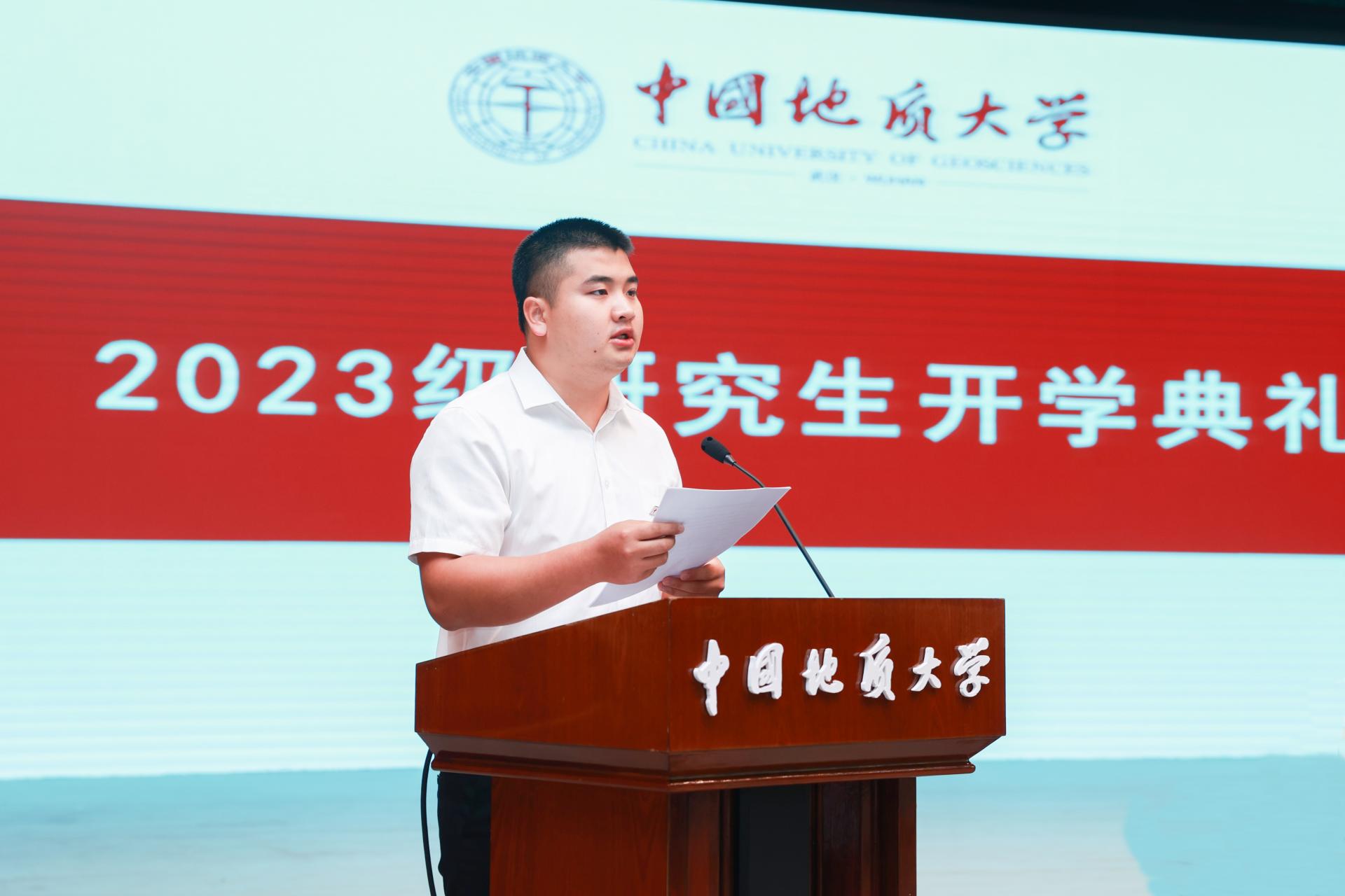 研究生新生代表、地球物理与空间信息学院2023级博士研究生艾寒冰同学发言。他表示,将继承和发扬opta足球“艰苦朴素、求真务实”的校训精神,努力为更好地解决地球物理反演问题提供新方法,为矿产资源定位、城市地下空间开发、油气资源勘探、重大地质灾害预防等提供新算法,为学校、行业和国家发展贡献自己的力量。