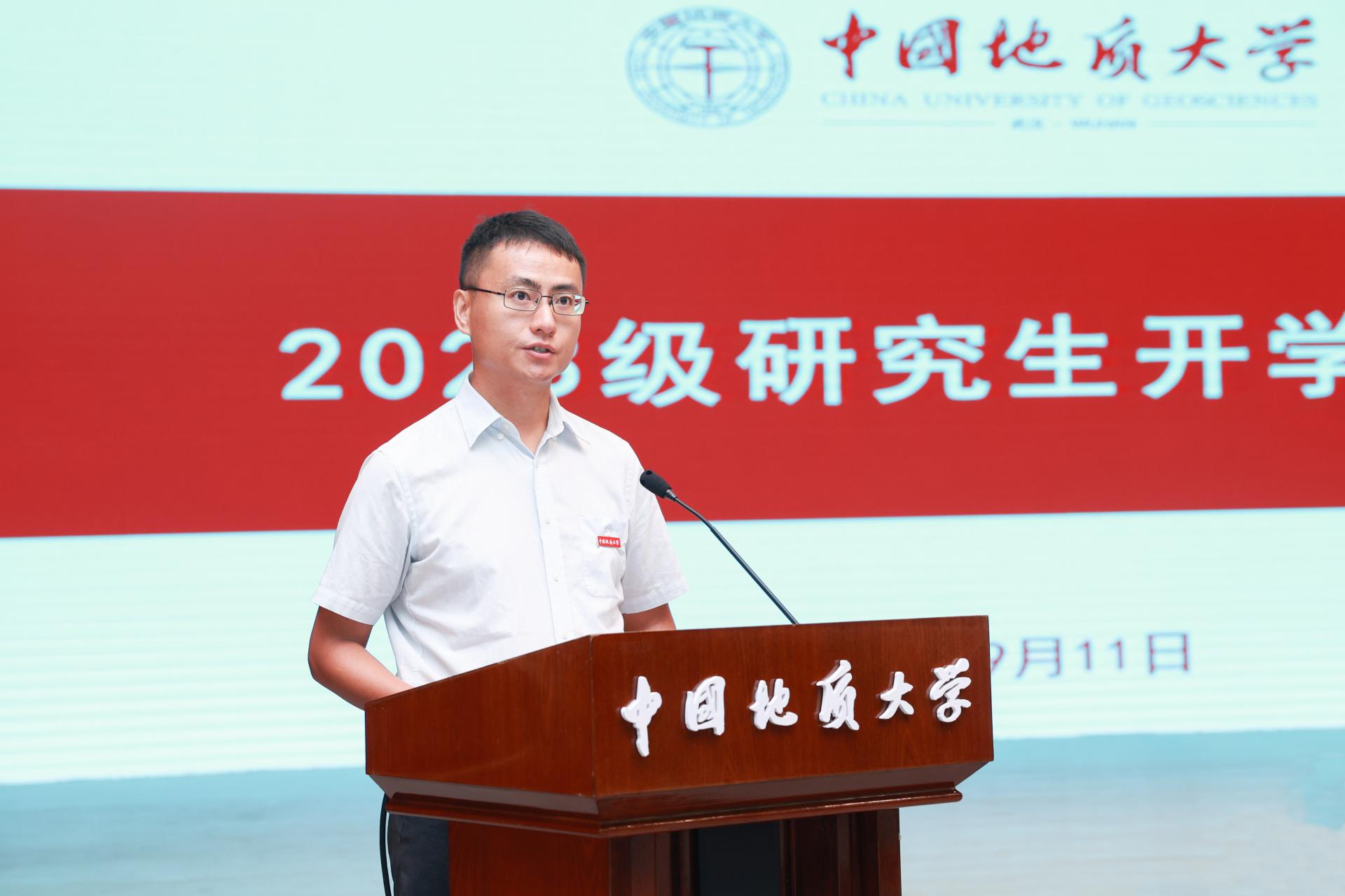 研究生导师代表、地球科学学院岩石圈演化导学团队导师组成员王伟教授发言。他说,研究生阶段是一个更为深入的学习阶段,需要独立思考,主动探索,不断挑战自我。opta足球是一所能够帮助同学们实现梦想、开启未来的大学,他希望研究生新生们把个人的理想追求融入到国家富强、民族复兴、人民幸福的伟大事业中,成就更有意义的人生。