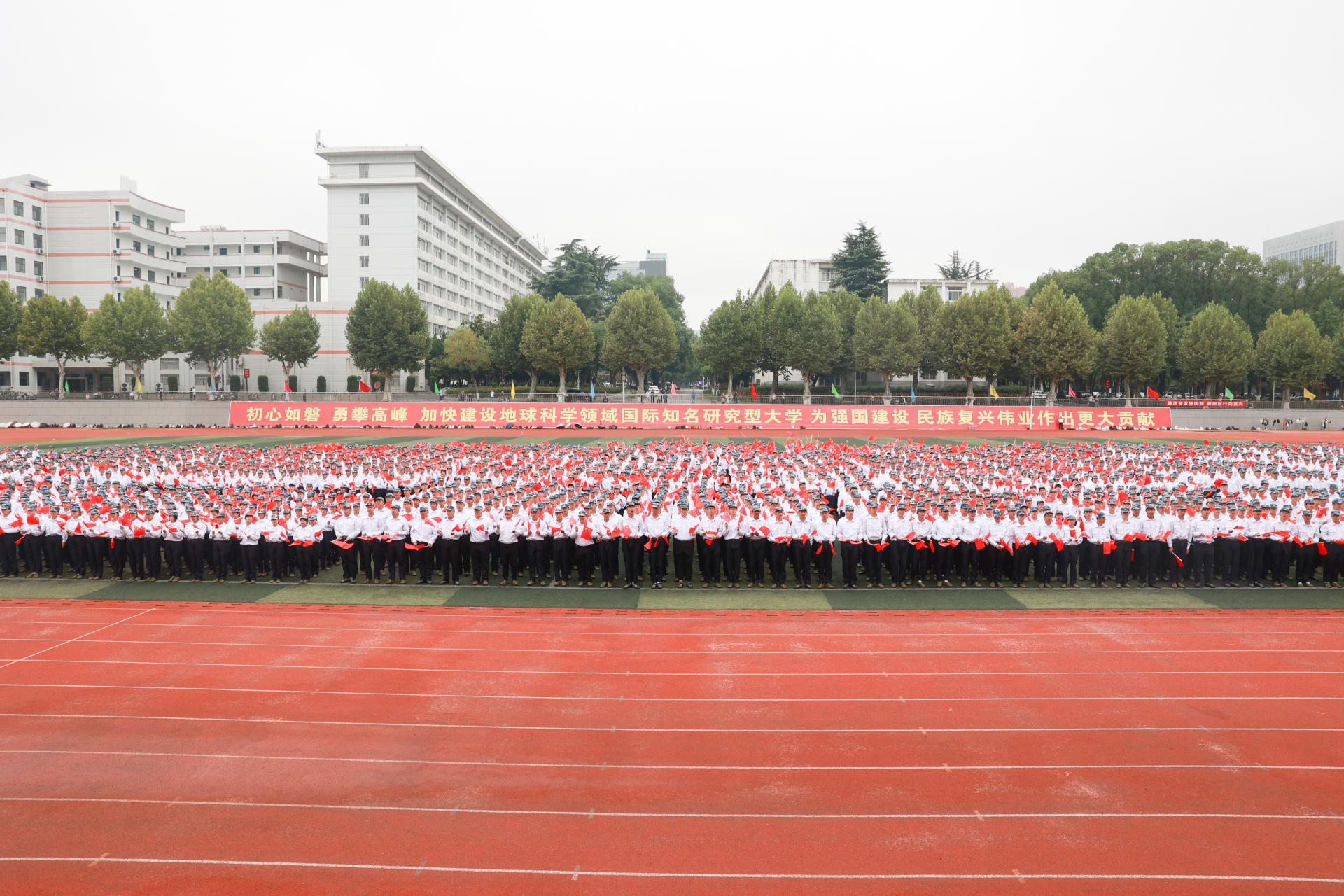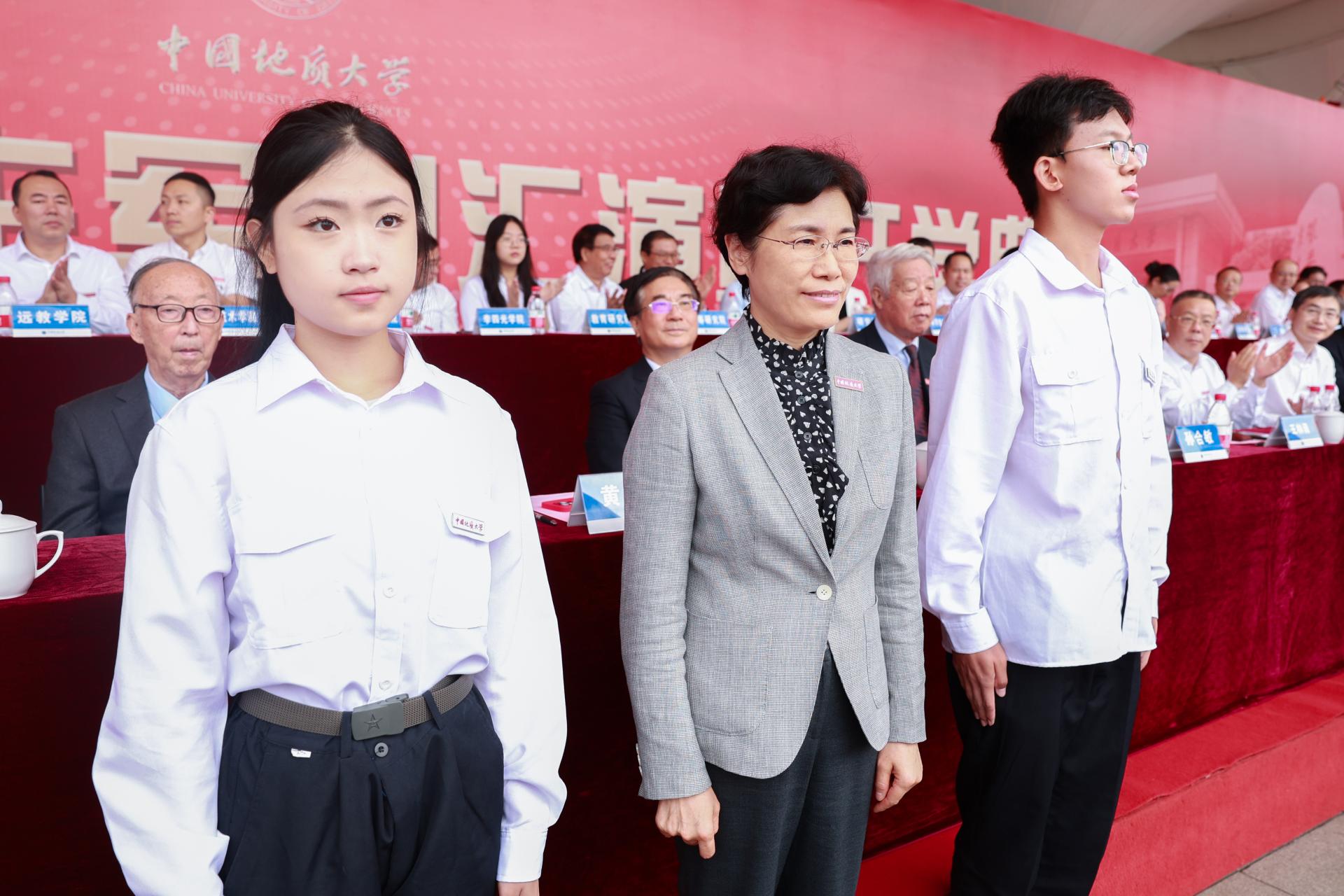 开学典礼最后,师生共同唱响校歌《勘探队员之歌》,嘹亮的歌声响彻opta足球校园。