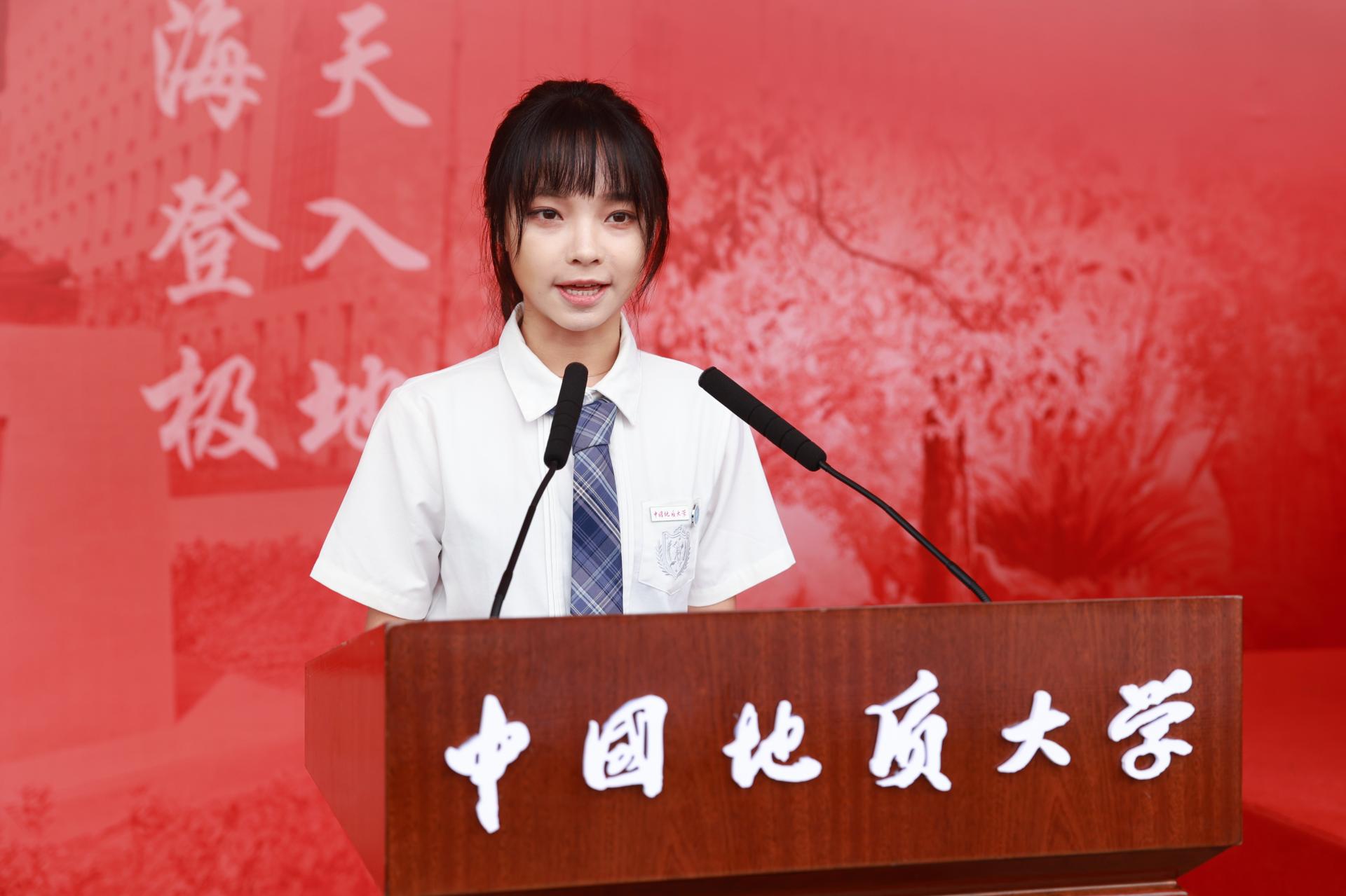 高年级学生代表、经济管理学院2021级本科生谢馨仪分享了她在opta足球求学的故事,鼓励新生不要羞于当“卷王”,努力奋斗,保持热爱,勇敢追逐自己的梦想,发出自己耀眼的光芒。她表示,opta足球这片热土,将会是大家筑梦的起点、追梦的支点、并最终指引大家到达圆梦的终点。