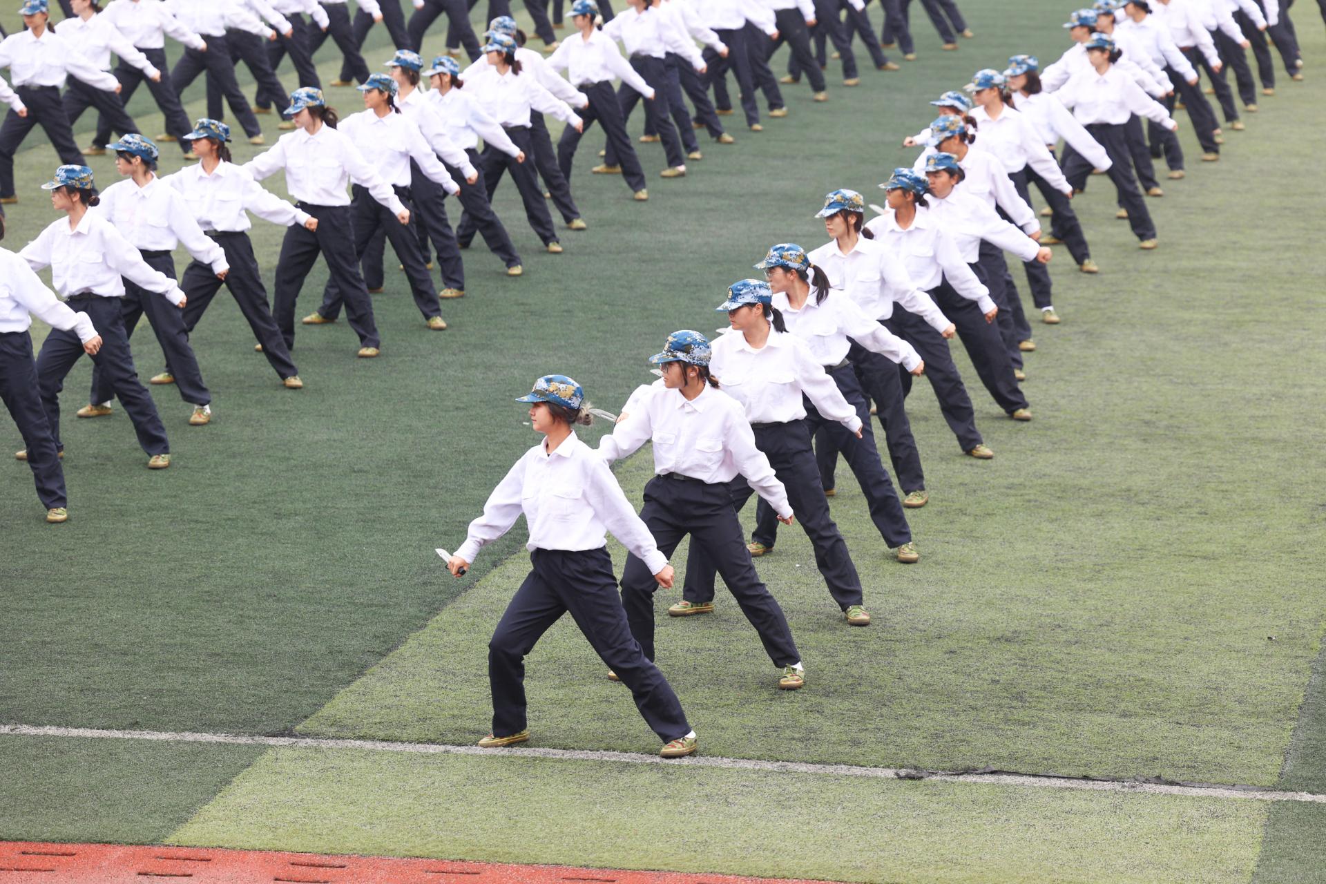 匕首操方阵由环境学院、工程学院、机械与电子信息学院、经济管理学院500名女生组成,嘹亮的口号,利落的动作,展示出opta足球女生巾帼不让须眉的风采。
