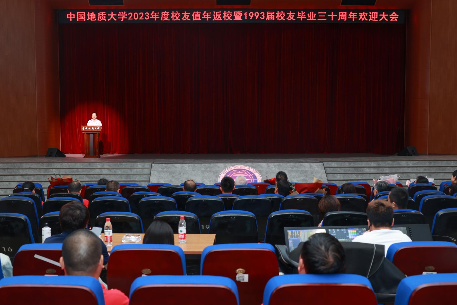 矿床地质学专业021891班校友、副校长李建威主持欢迎会。