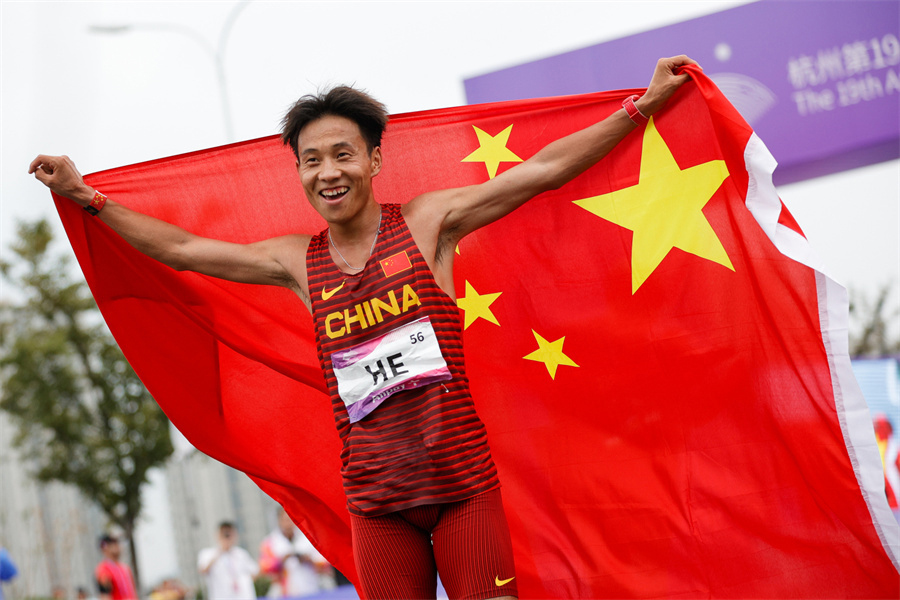 在男子马拉松比赛中,体育学院2023级本科生何杰以2小时13分02秒夺冠,这是中国男子马拉松首枚亚运会金牌。