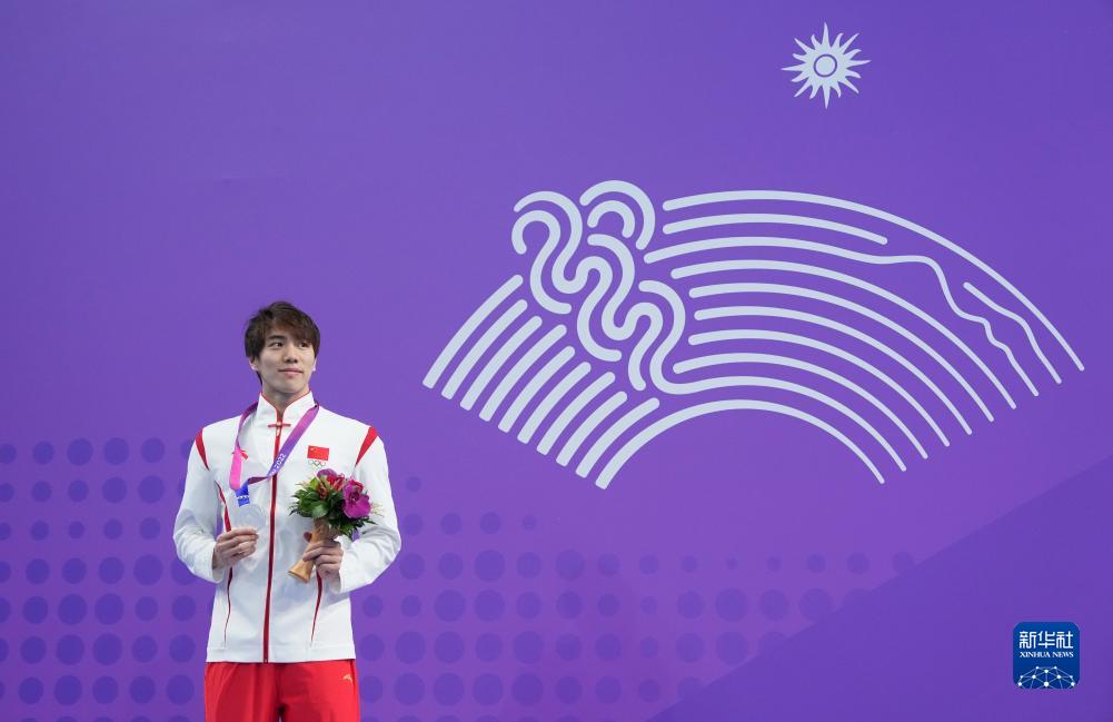 孙佳俊在男子50米蛙泳颁奖仪式上。 新华社记者 杜宇 摄