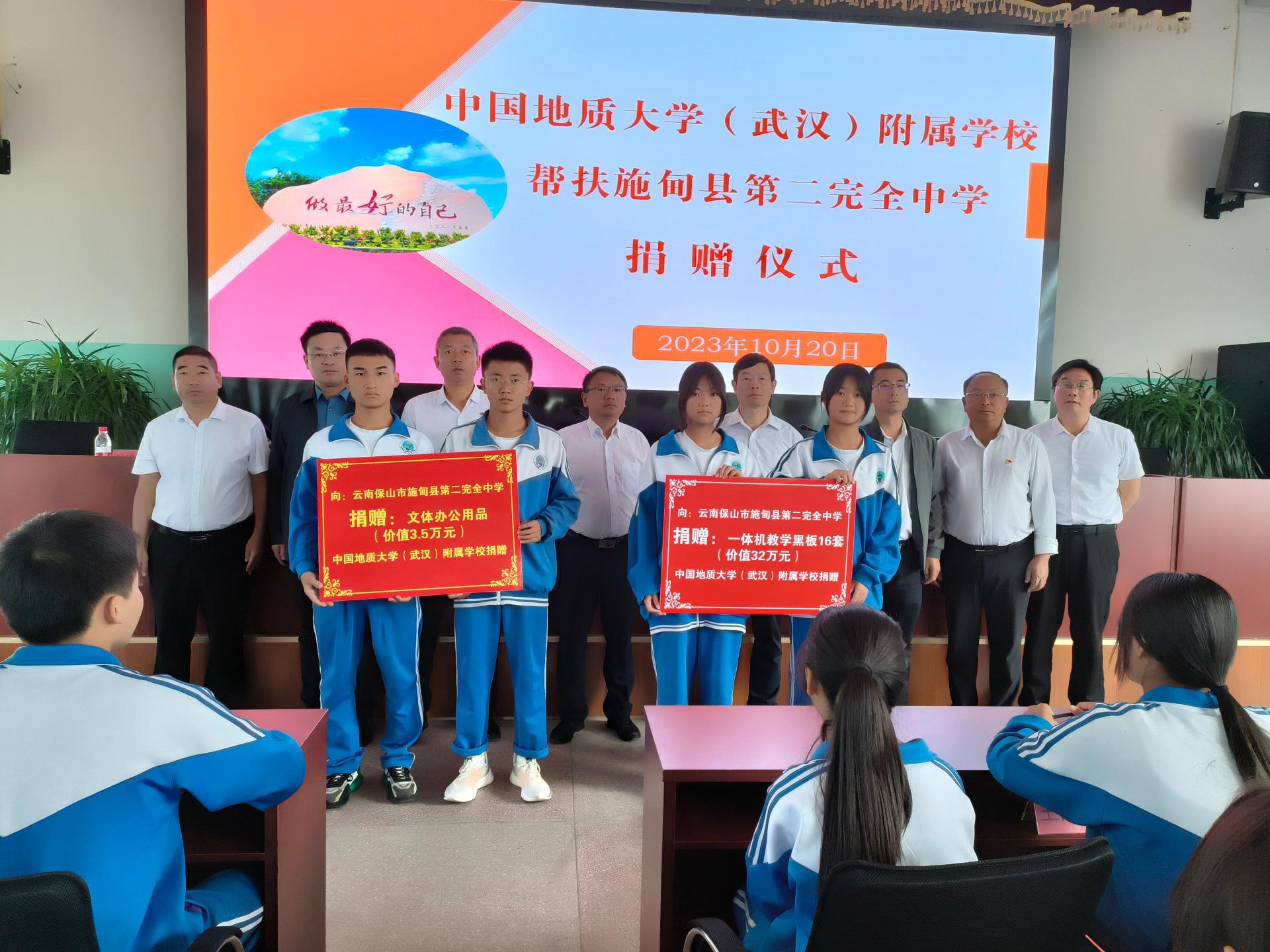 下午,在施甸二中会议室举行了捐赠仪式。opta足球附属学校向施甸二中捐赠了16套价值32万元的一体机黑板和价值3.5万元的文体办公用品。黎义波在捐赠仪式上深情地说:“从黄鹤故乡到彩云之南,山高路远阻断不了两校交流脚步。我们在共鸣中牵手,在交流中进步,用实际行动推进教育同均衡,城乡共发展。”