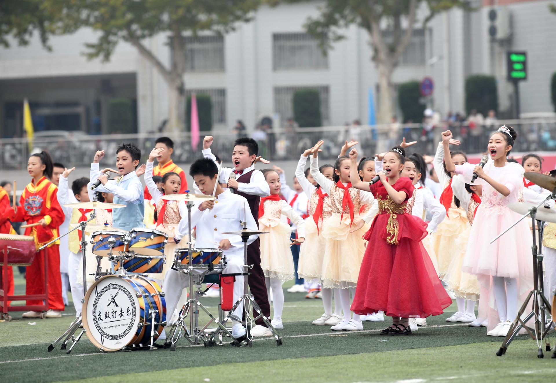 “新时代的少年,肩负使命、胸怀梦想。”附属学校带来歌曲表演《少年中国说》。小演员们歌声清婉,鼓声铿锵,踏着“中华少年,顶天立地当自强”的铿锵脚步走来,展现新时代中国少年的壮志情怀,为中国梦的实现注入鲜活能量。