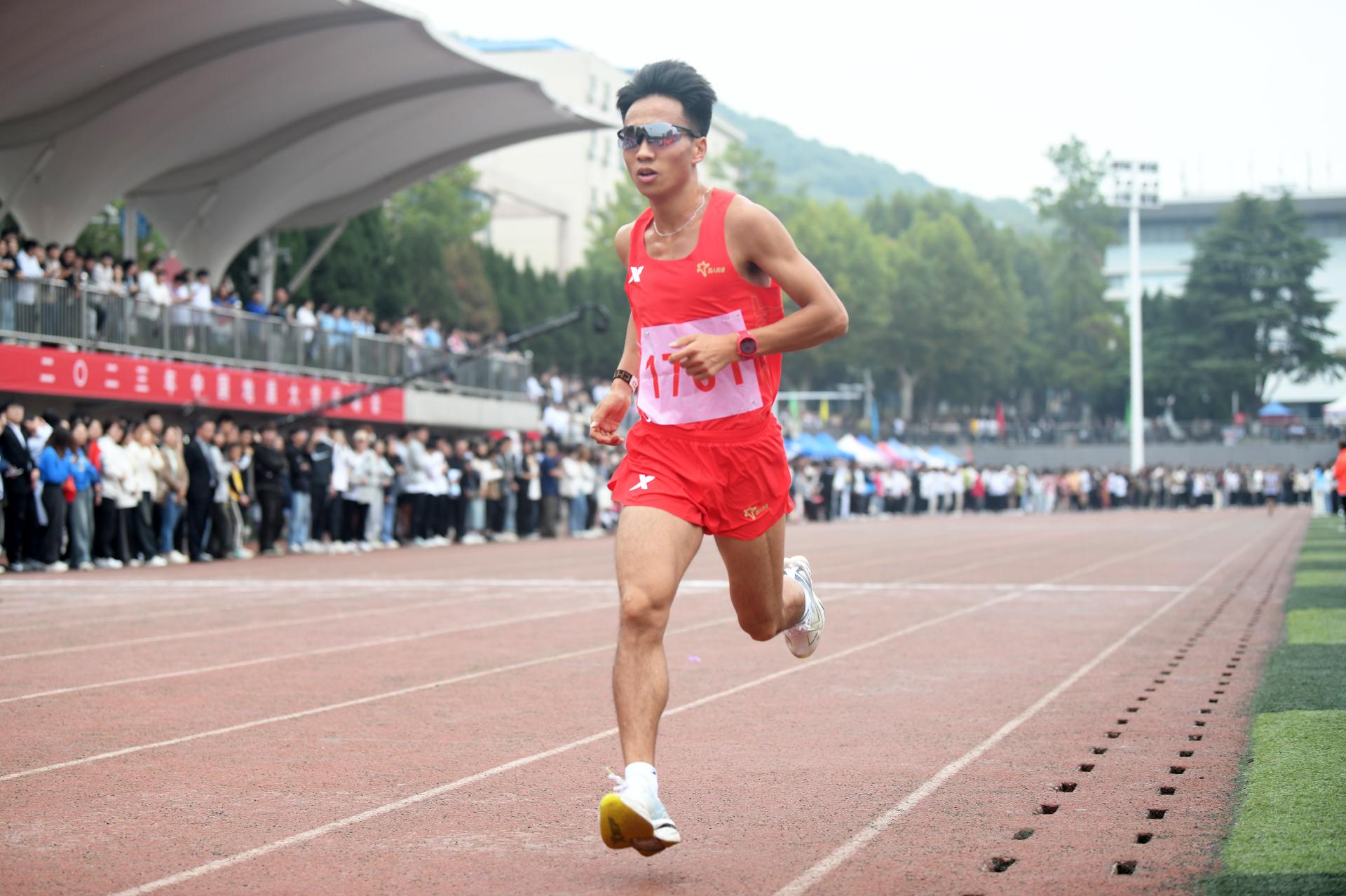 开幕式结束后,由何杰领跑男子5000米决赛。何杰一路领先,以15分02秒36的成绩率先抵达终点。何杰赛后表示,“这是我近几年第一次在校园里比赛,心情特别激动,我们年龄相仿,有着共同的爱好,和同学们见面互动,给他们加油鼓劲,非常开心。”