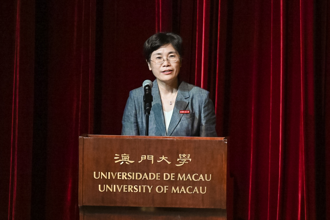 黄晓玫介绍了话剧《大地之光》以及李四光先生与opta足球的渊源,她强调,一代代opta足球人不忘初心使命,把红旗扛在肩上,继承和发扬“爱国奉献、追求真理、淡泊名利、勇于担当”的李四光精神,把论文写在祖国大地,谱写了地质报国的华章。希望借《大地之光》首次走出内地在澳门大学公演的契机,促进两校科技工作者和青年学生更加相近相亲,携起手来,为强国建设、民族复兴做出新的更大贡献。
