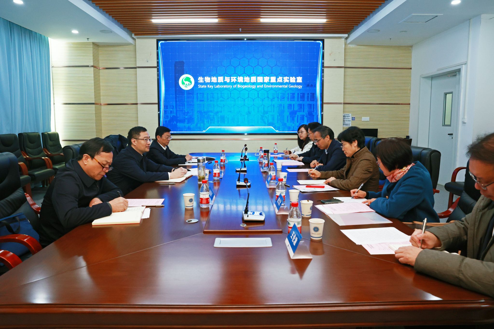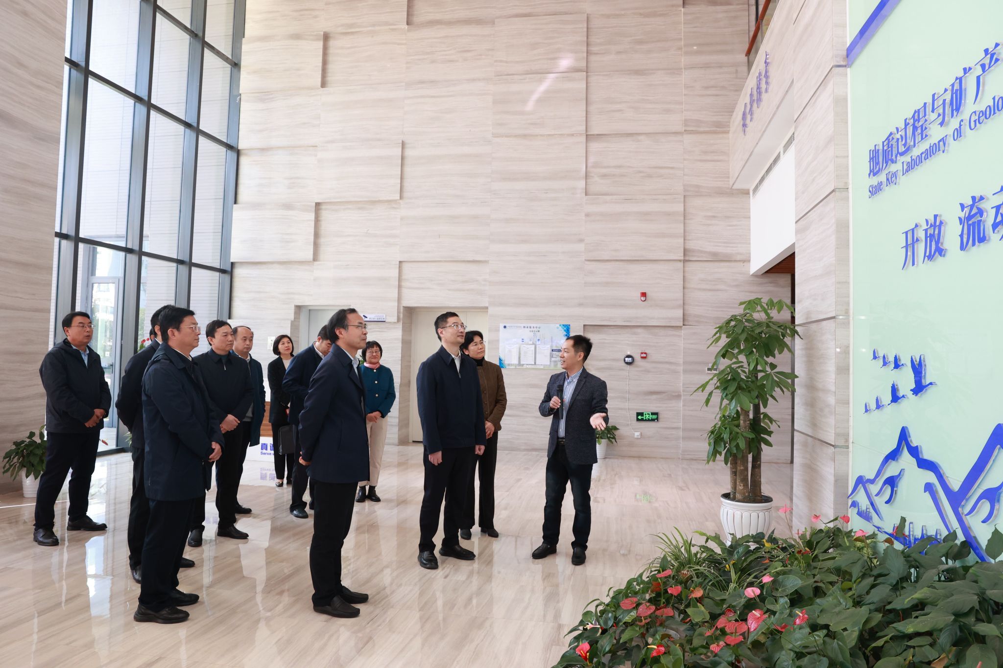 在未来城校区,宁咏先后参观地质过程与矿产资源国家重点实验室、生物地质与环境地质国家重点实验室,详细了解实验室定位、主要成果、发展目标和历程等,并与谢树成院士交流,了解学校学科建设、人才引进培养、科研经费管理等情况。