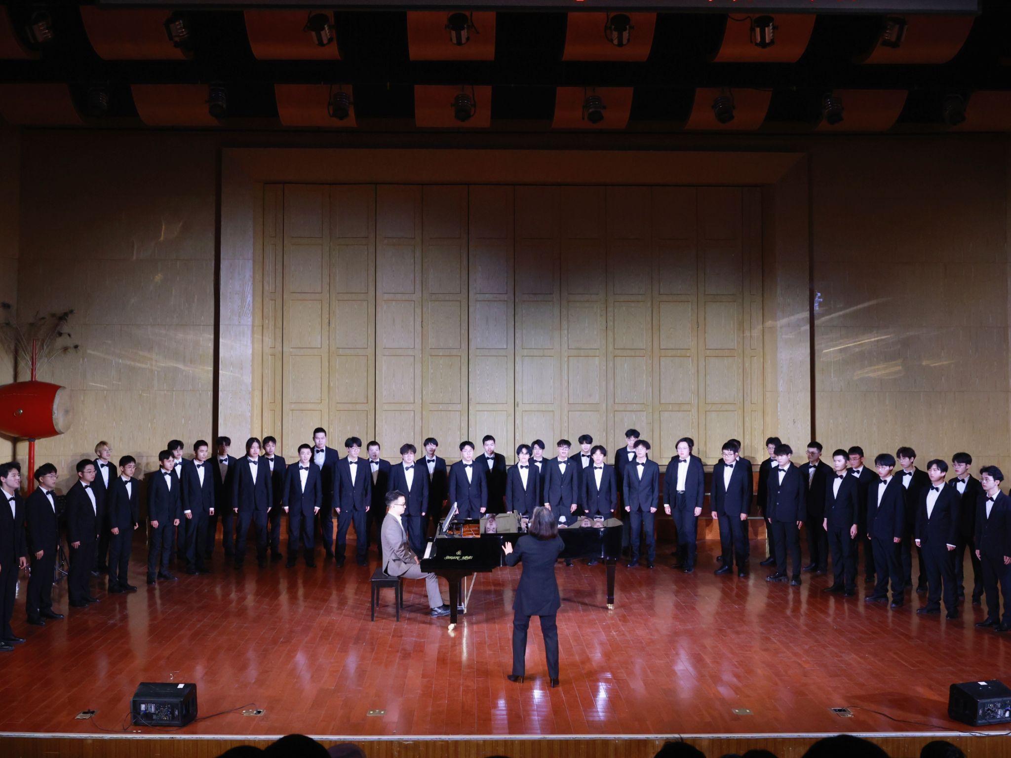 校大学生艺术教育中心第五元素合唱团带来了男声合唱《欢乐的那达慕》《走峡江》两首曲目,他们用雄浑的歌声赢得了热烈的掌声。(编辑 焦思勤 审核 陈华文)