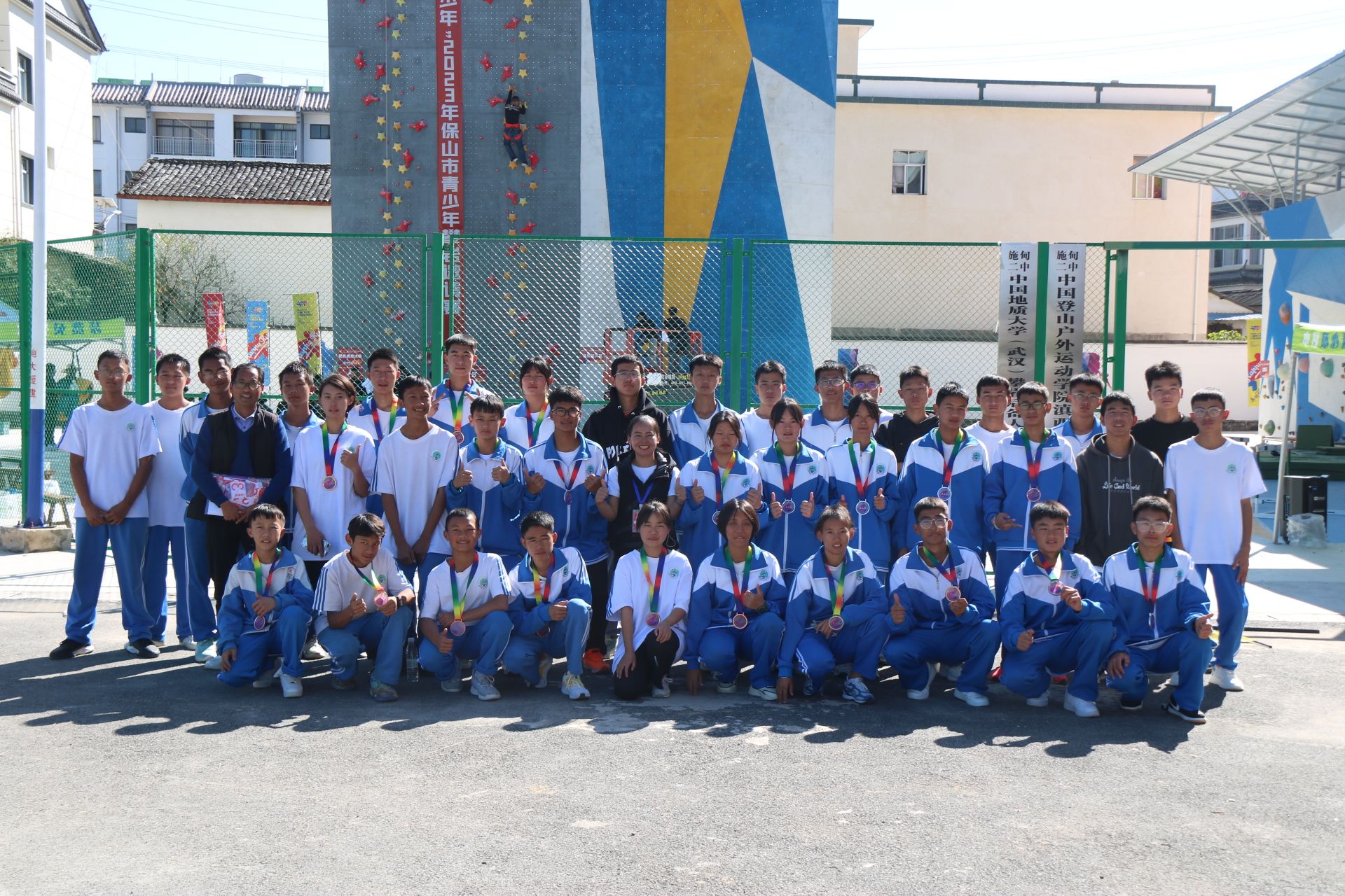本次比赛分为攀岩难度与速度两个专业项目,每个项目根据年龄段和性别分组进行,来自全市各中小学的150余名选手参加比赛。经过两天的激烈角逐,共产生金银铜牌59枚。“东道主”施甸二中的选手首次参加攀岩比赛并斩获7金8银7铜的佳绩。