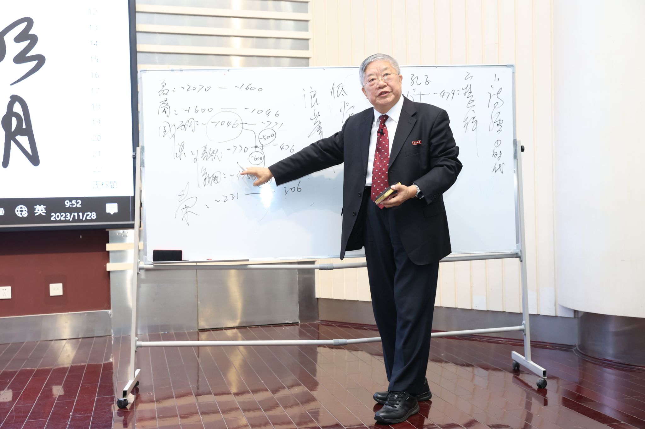 在300余名听众的掌声中,程郁缀教授走上讲台,进行“古典诗词与人文情怀”的首场讲座。程郁缀教授边讲边写,用古典诗词中的经典名篇、名句,将中国诗歌的千年脉络娓娓道来。“对讲台要有敬畏之心。”程郁缀说无论上课、听讲座,都要遵守纪律,尊重知识。“不管是做学问还是做人要做到忘我,才能成就伟大事业,不会被人忘记。”他希望科技工作者珍惜时间,不但要有杰出才能还要有高尚德行。他勉励大家要坚定“人生不可半途废,登山要上最高峰”的信念,树立“大气方能成大器,有德不必求有得”的心态,秉持“甘于吃亏,勇于吃苦”的精神,努力成就自己。