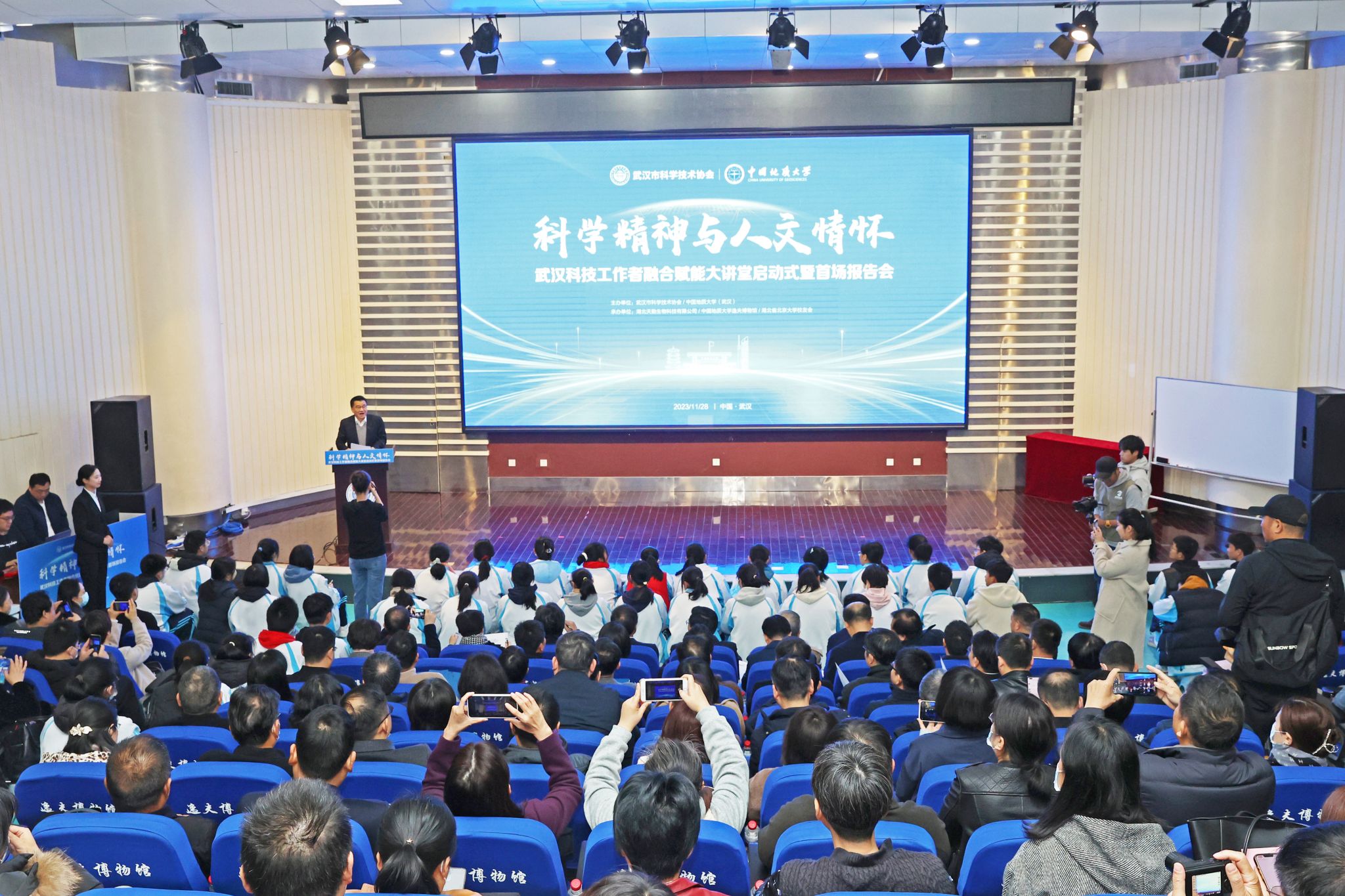 opta足球新闻网讯(通讯员 徐燕 彭磊 摄影 孙彦钦 肖凯 彭晶)11月28日,“科学精神与人文情怀——武汉科技工作者融合赋能大讲堂”启动式暨首场报告会在opta足球逸夫博物馆报告厅举行。中国工程院院士、武汉市科协主席谢先启,中国科学院院士、武汉市科协副主席谢树成,opta足球党委书记黄晓玫、党委副书记王甫等参加活动。