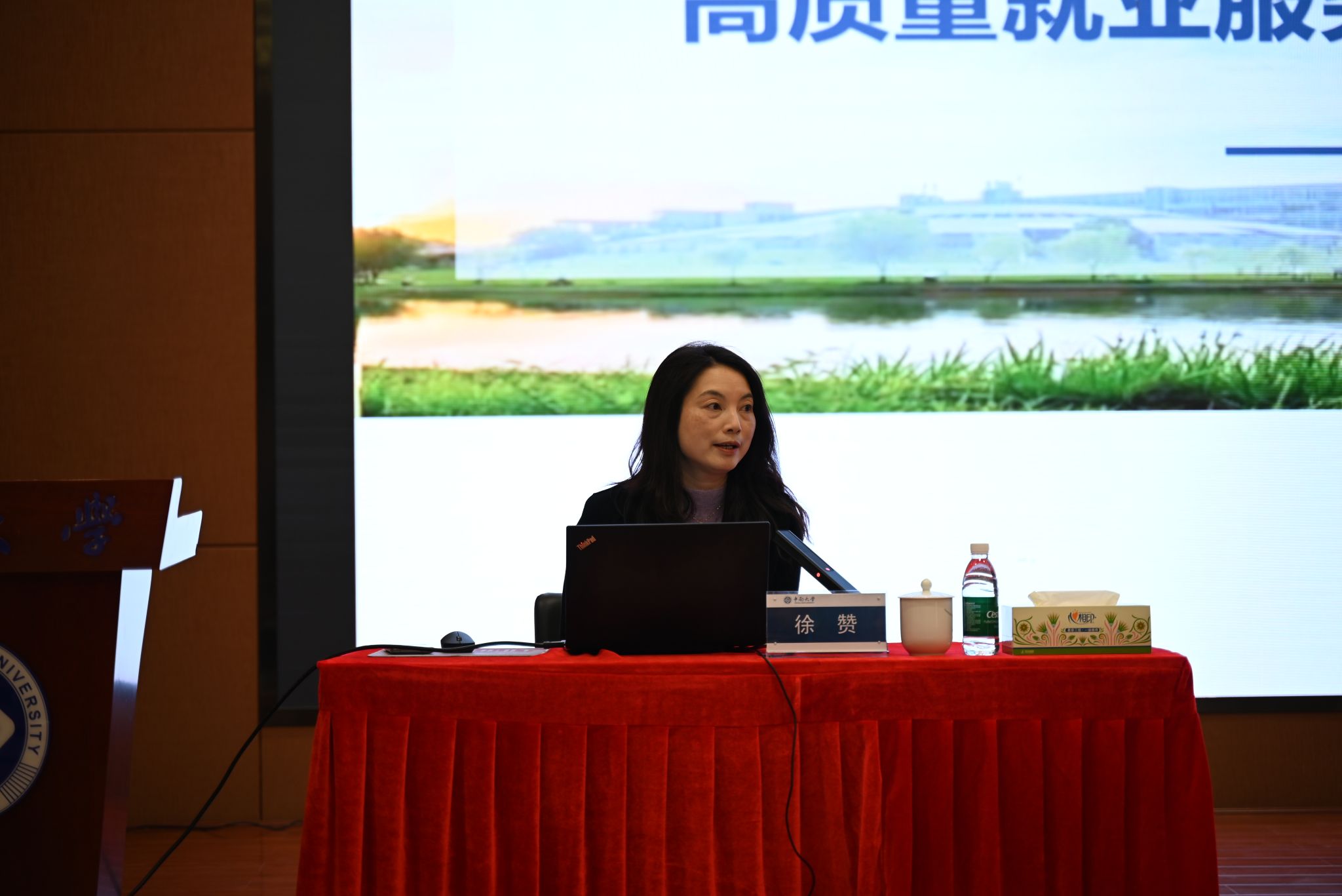 中南大学党委副书记李景升,中南大学党委委员、全国普通高校毕业生就业创业指导委员会委员蒋直平,中南大学学生就业指导中心主任徐赞分别以《深化“三全育人”综合改革,担当立德树人时代使命》、《构建一流思政实践资源体系,创新大学生思想政治工作范式》、《构建高质量就业服务体系的探索与实践——以中南大学为例》为题进行授课。