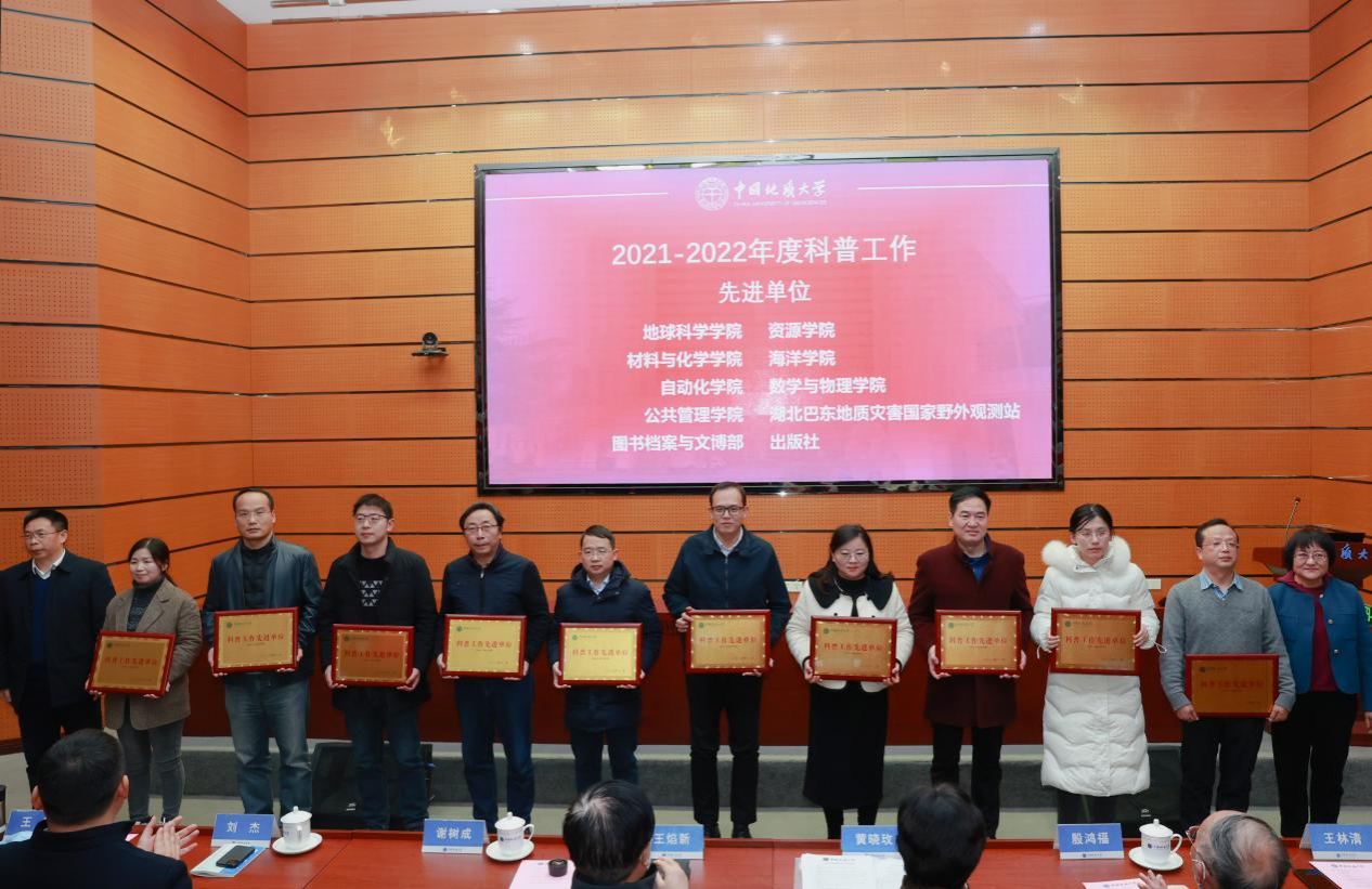会上,校领导为2023年度国家自然科学基金管理先进单位、2023年度国家社会科学基金管理先进单位、2021—2022年度科普工作先进单位获奖单位颁奖。