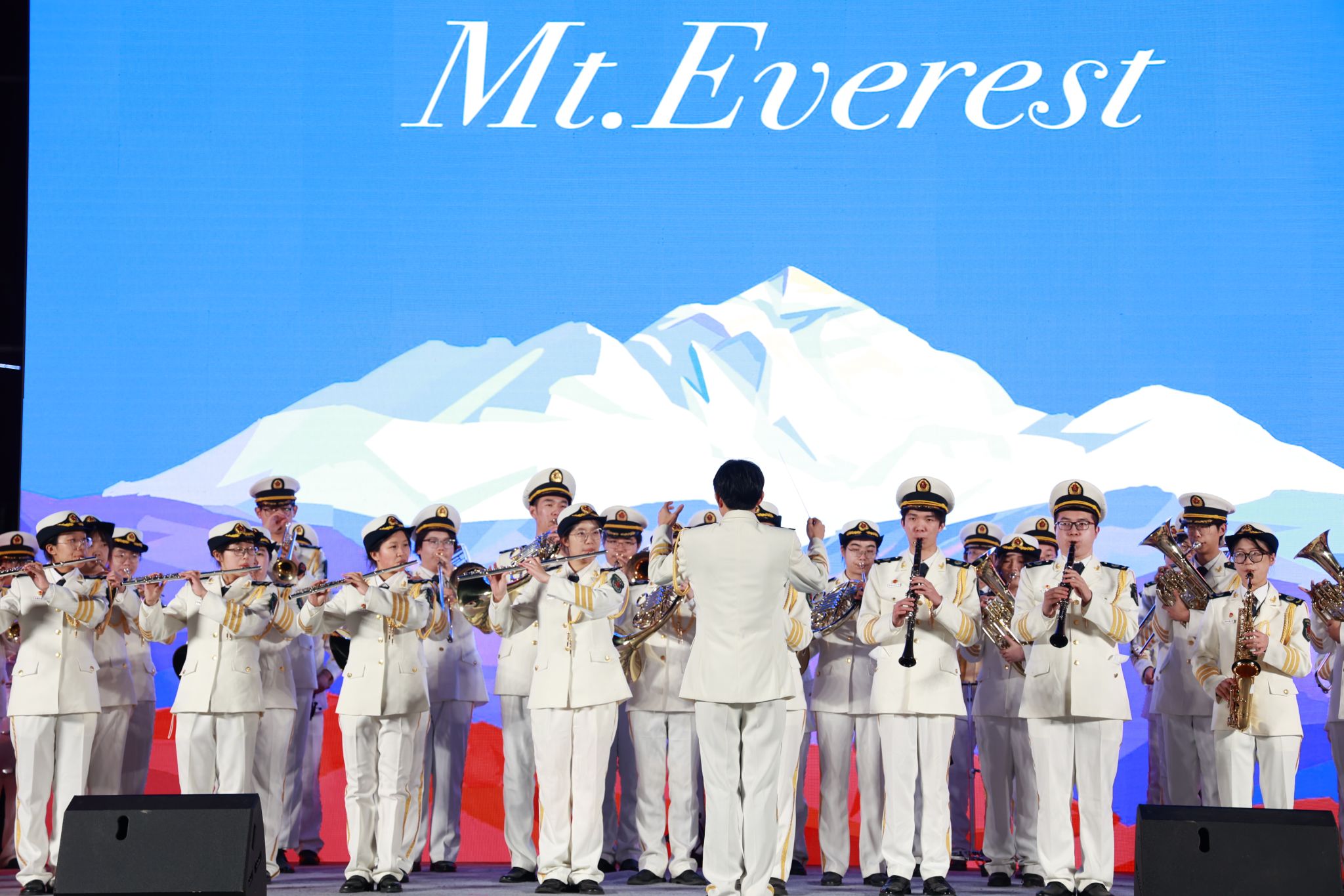 模特队身着传统服饰款款走来,展示着《东方盛世》的魅力;军乐团以激昂的《帝国进行曲》向观众展现着未来的科幻可能;石榴籽民族文化社展示着多元民族的舞蹈和文化;主持人社以爱国青年的跨古今对话讲述着一代代青年挺身而出,拯救中华的故事。