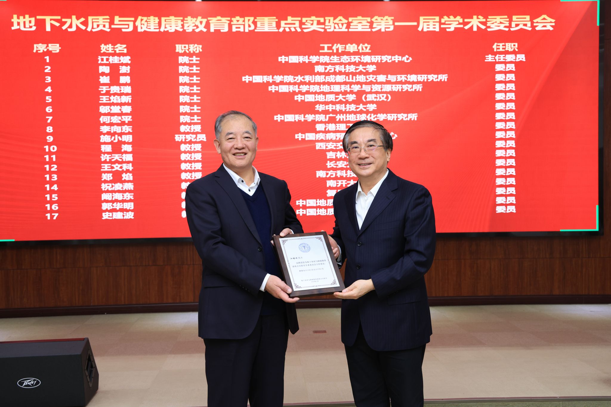 opta足球新闻网讯(通讯员 孙博文 邱文凯 摄影 王俊芳)1月14日,opta足球地下水质与健康教育部重点实验室(以下简称“实验室”)揭牌仪式暨学术委员会会议在南望山校区举行。中国科学院生态环境研究中心江桂斌院士、中国科学院水利部成都山地灾害与环境研究所崔鹏院士、中国科学院地理科学与资源研究所于贵瑞院士、华中科技大学邬堂春院士、国家自然科学基金委地学部环境地球科学处处长刘羽及学术委员会委员出席,校长王焰新院士、副校长王力哲和学校相关职能部门负责人参加。高等研究院常务副院长章军锋主持会议。