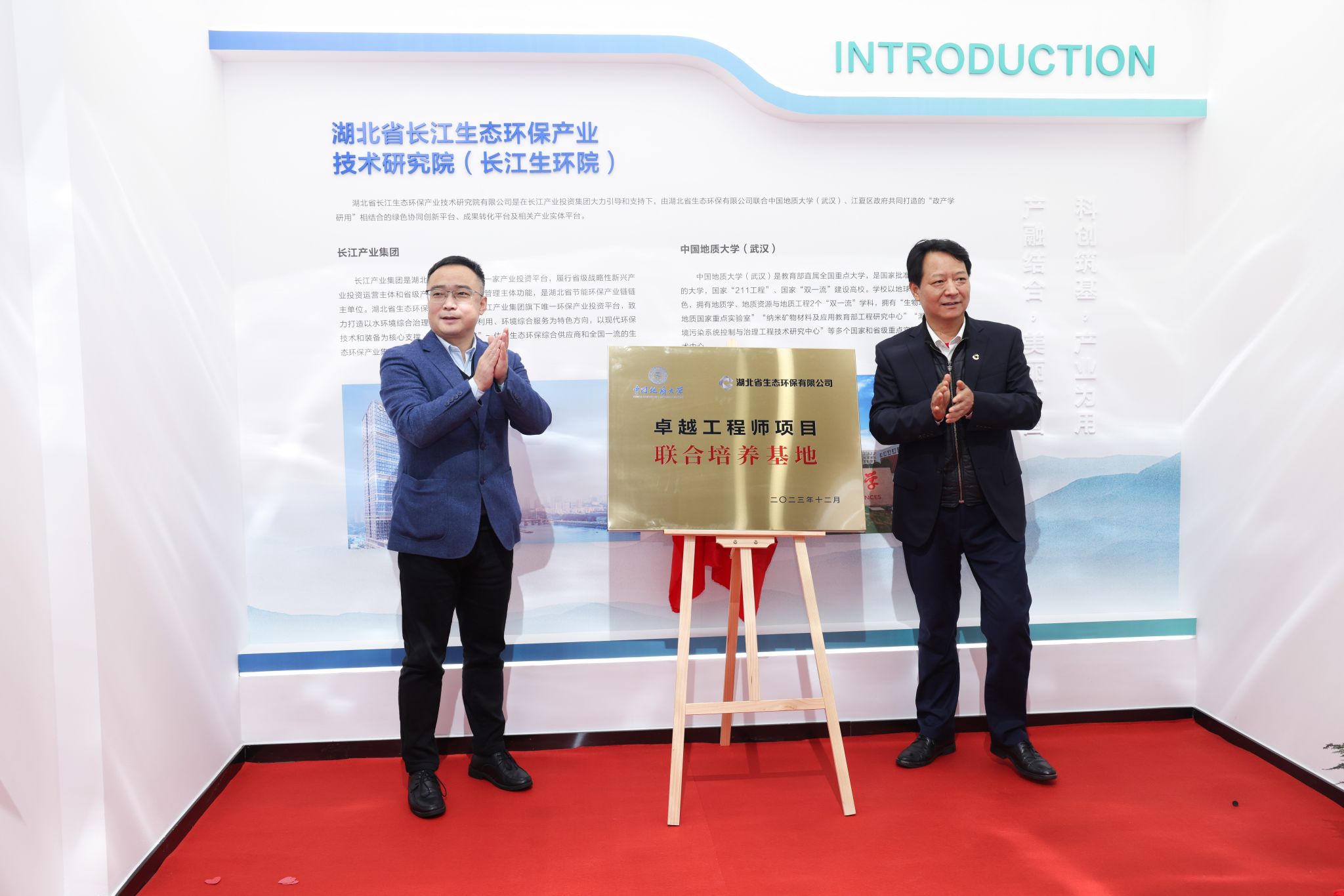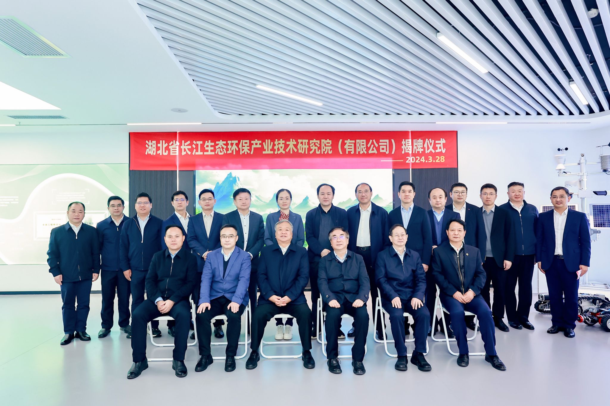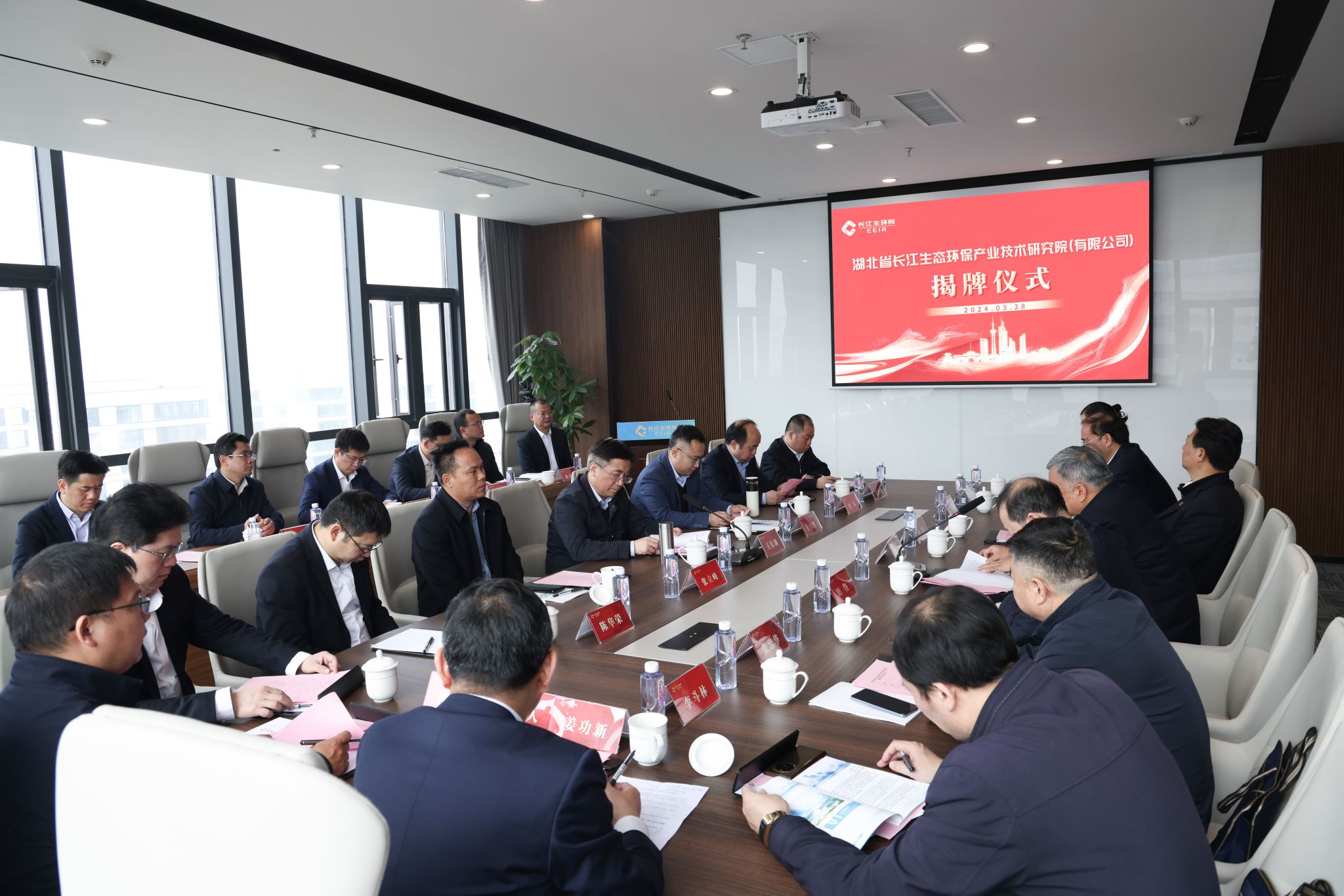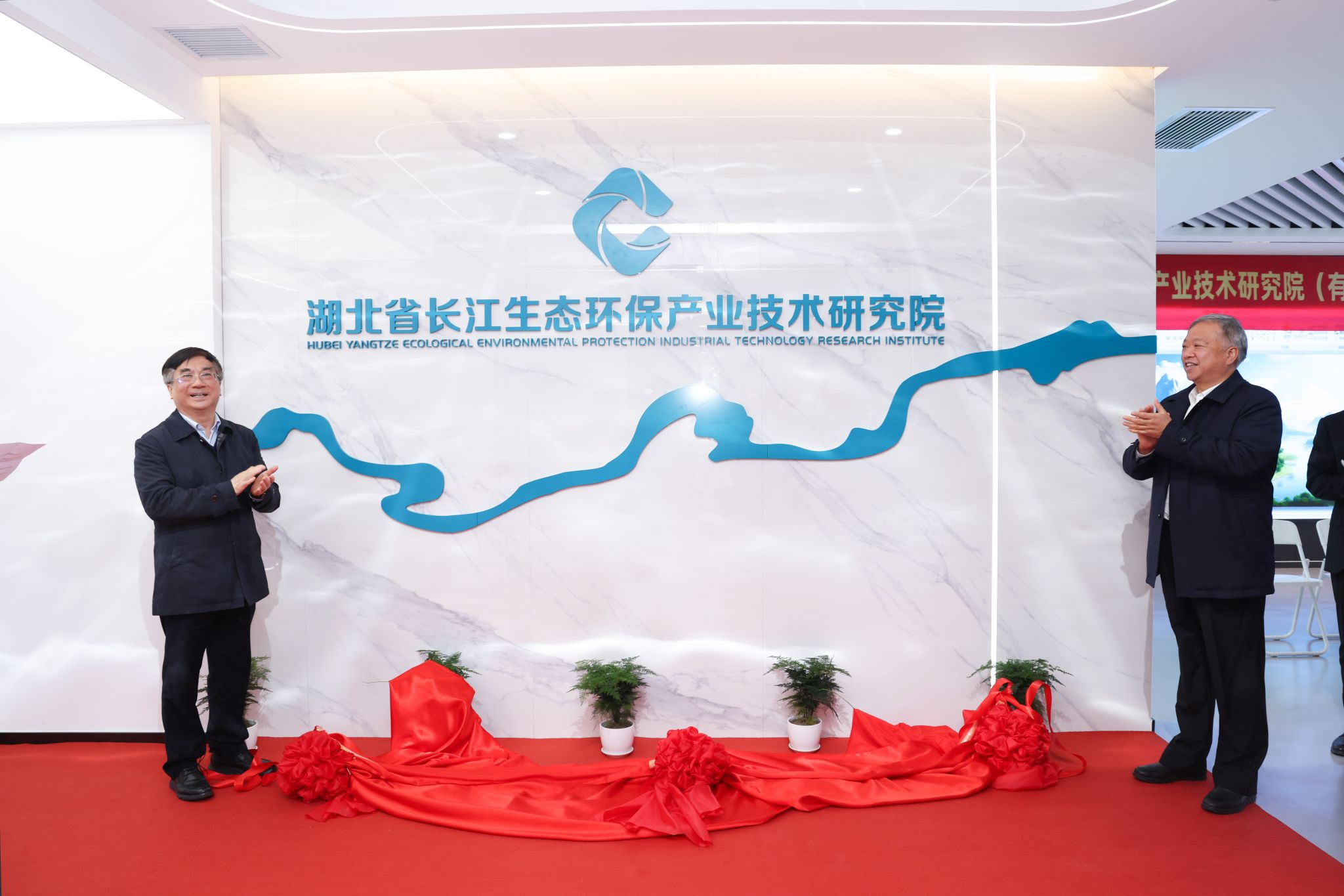 王焰新与黎苑楚共同为湖北省长江生态环保产业技术研究院揭牌。