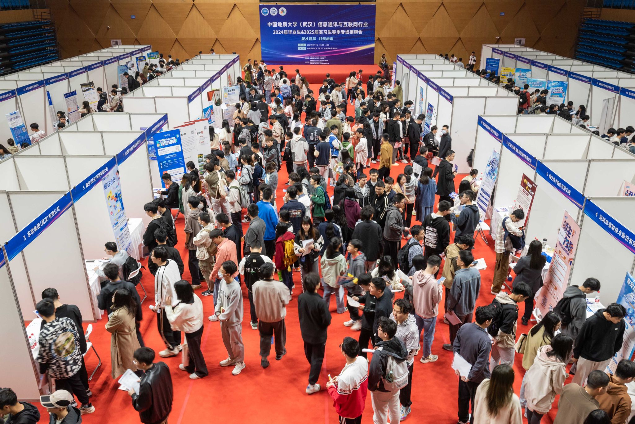 招聘会现场,中国电信股份有限公司湖北分公司、烽火通信科技股份有限公司、中南电力设计院、腾讯科技(深圳)有限公司、武汉金山办公软件有限公司等55家知名企业,提供了涵盖计算机、信息工程、测绘遥感、自动化、材料科学、数学统计、市场营销等相关专业近500个就业岗位,吸引了两校区近2000名学生参加招聘活动。