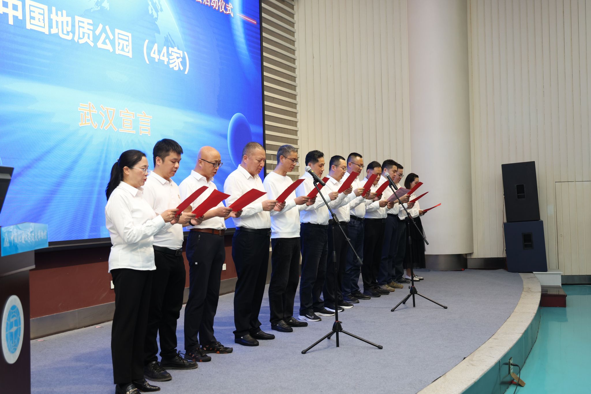 来自国家地质公园的12名代表齐聚会场,共同宣读“保护地质遗产 守护地球家园”的世界地质公园宣言。他们承诺致力于保护珍贵的地质遗产,严格保护公园的生态环境,积极推广地质科学知识,减少公园的温室气体排放,倡导绿色出行,不断提升公园的管理水平,加强与国际地质公园组织的合作与交流,呼吁更多的人成为地球的守护者。