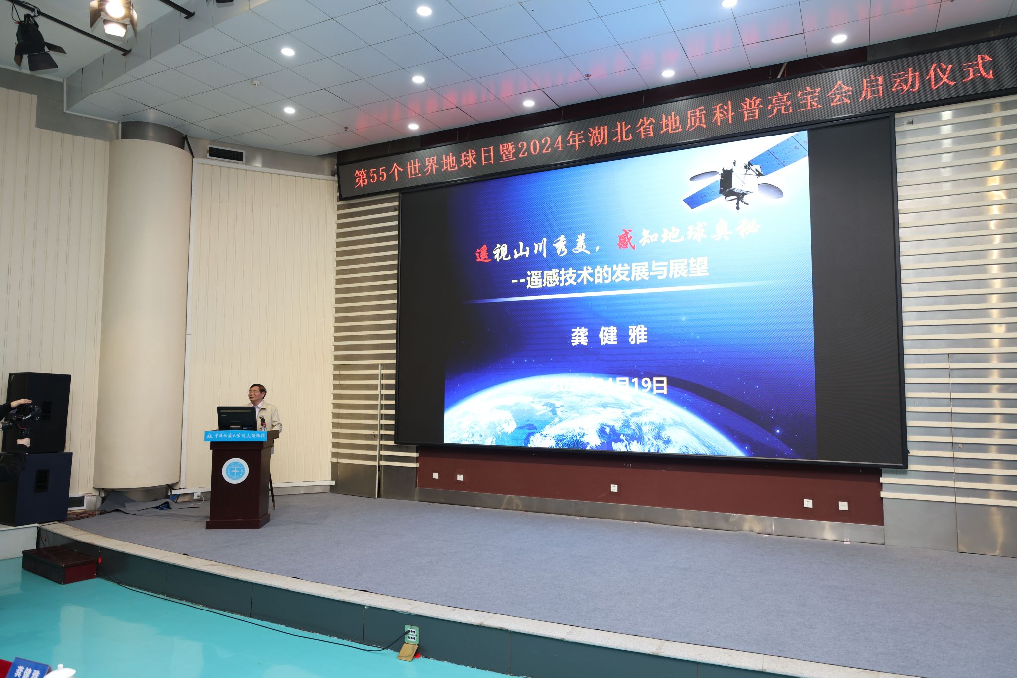 唐忠阳致辞。他指出,举办世界地球日科普宣传活动既是深入学习贯彻习近平生态文明思想、引导全社会树立“尊重自然、顺应自然、保护自然”理念的重要举措,也是动员社会公众积极响应“双碳”战略、践行“绿色、环保、低碳”生活方式的实际行动。他表示,作为地质教育的“国家队”,opta足球坚持谋求人与自然和谐发展,主动服务“美丽中国 宜居地球”建设,在引领绿色教育发展、服务生态文明建设、推动经济绿色转型等方面作出了较大贡献。他呼吁与会人员积极践行人与自然和谐共生的发展理念,携手构建人与自然生命共同体。