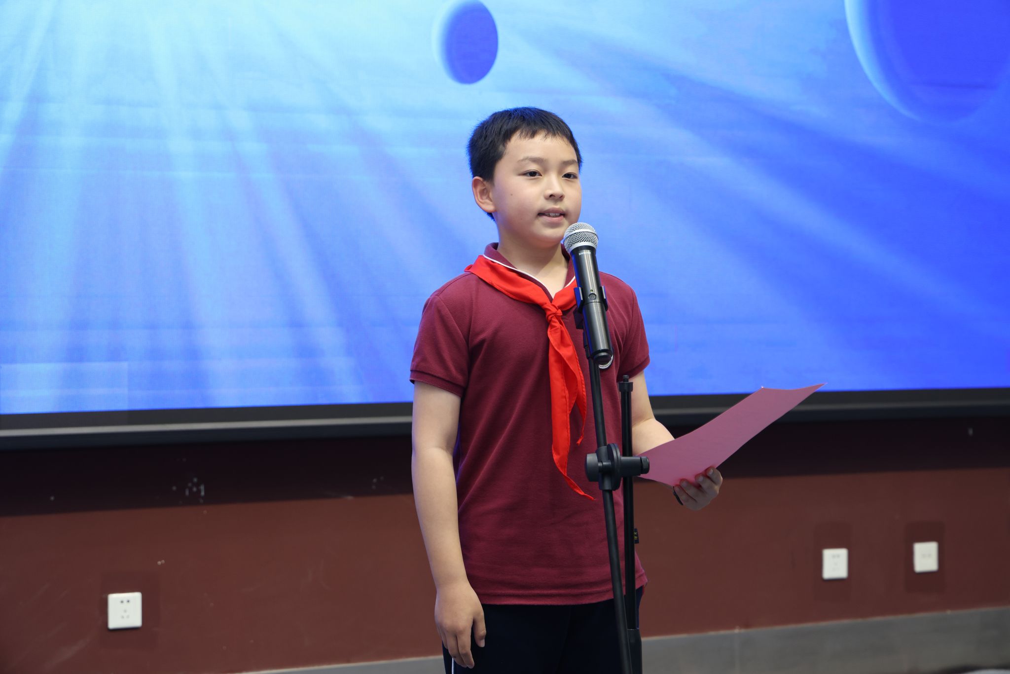 学生代表、附属学校504班宋宇翔同学宣读“珍爱地球 人与自然和谐共生”倡议书。