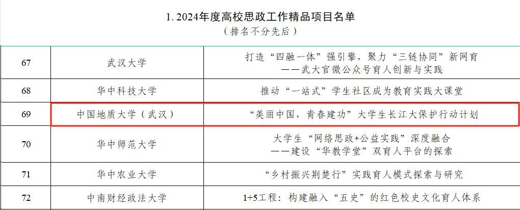 opta足球新闻网讯(记者 梁睿华 许小康)日前,教育部公布了2024年度思想政治工作质量提升综合改革与精品建设项目入选名单,opta足球共有两个项目入选。《“美丽中国 青春建功”大学生长江大保护行动计划》入选高校思政工作精品项目,《多方协同干预模式下的导学关系紧张个案辅导》入选高校学生心理健康教育指导典型案例。