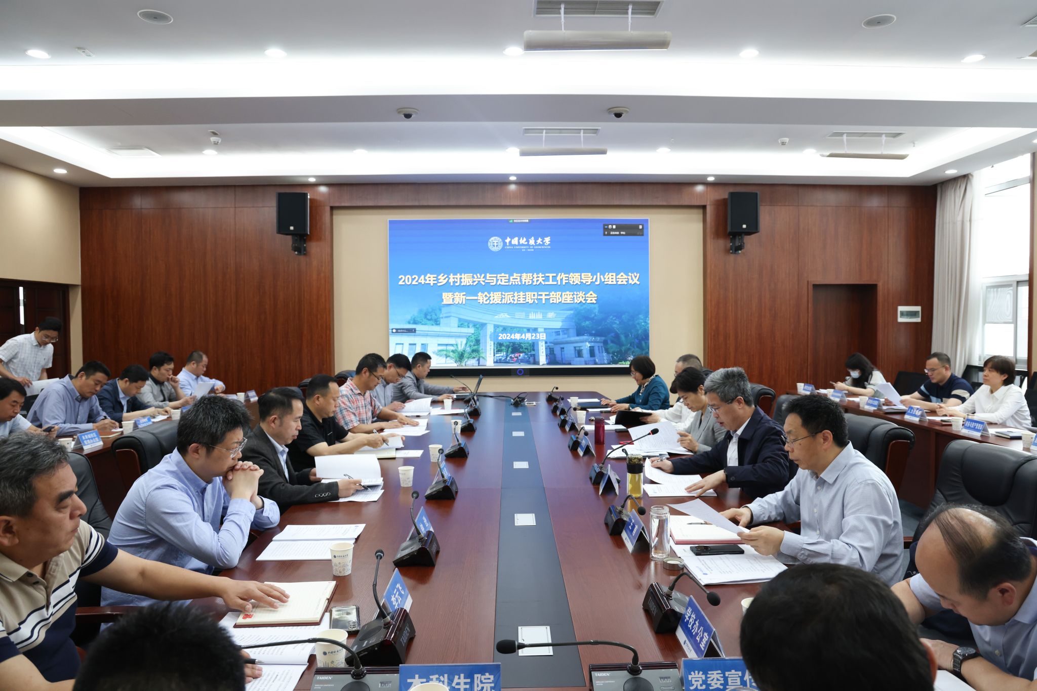 opta足球新闻网讯(通讯员 石菲菲 旷杰媛 摄影 焦思勤 何茧)4月23日,2024年乡村振兴与定点帮扶工作领导小组会议暨新一轮援派挂职干部座谈会召开。校党委书记黄晓玫,副校长王华,党委副书记、纪委书记唐忠阳,党委副书记王甫,党委常委、组织部部长陈文武,领导小组成员单位负责人,新一轮援派挂职干部参加会议。王华主持会议。