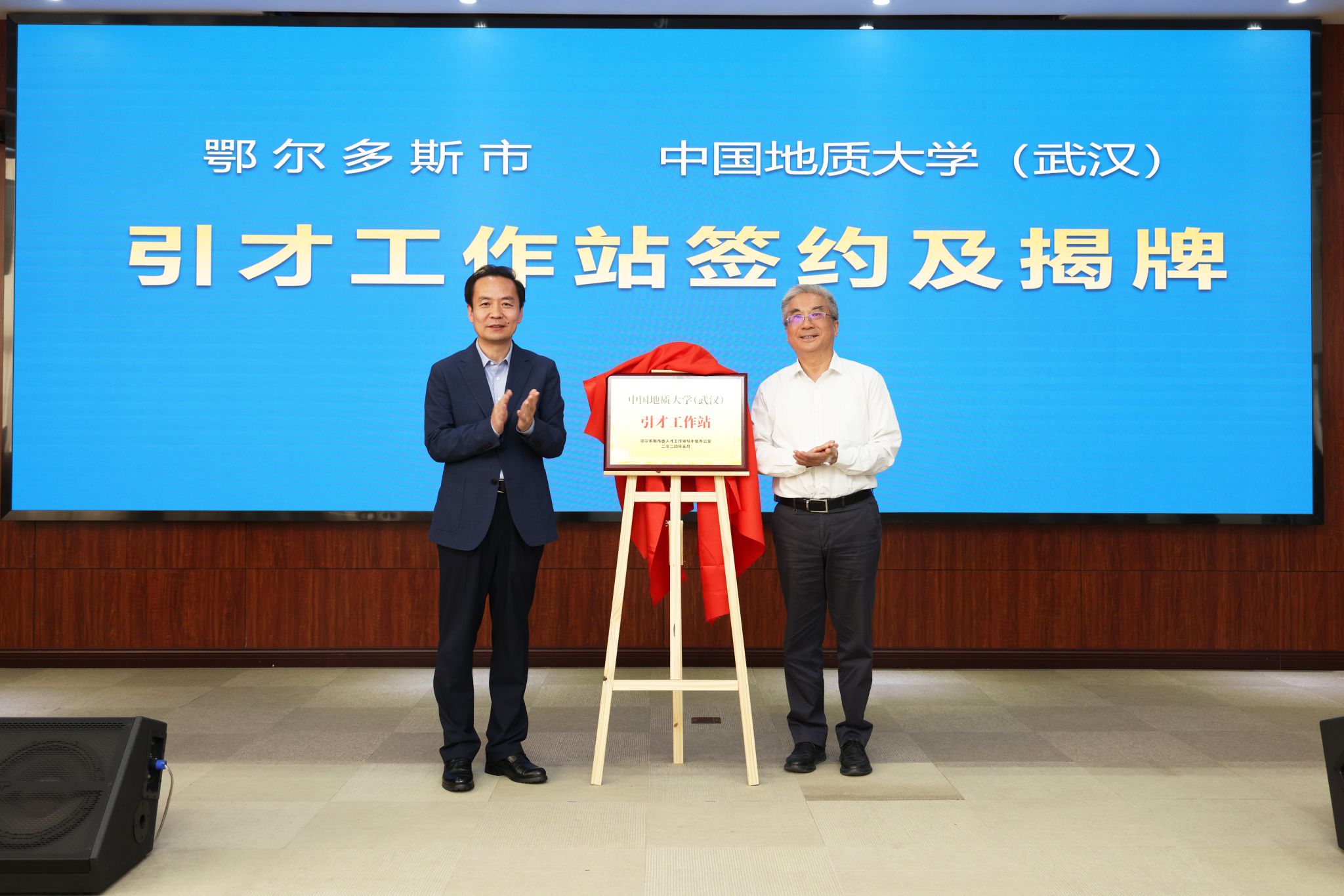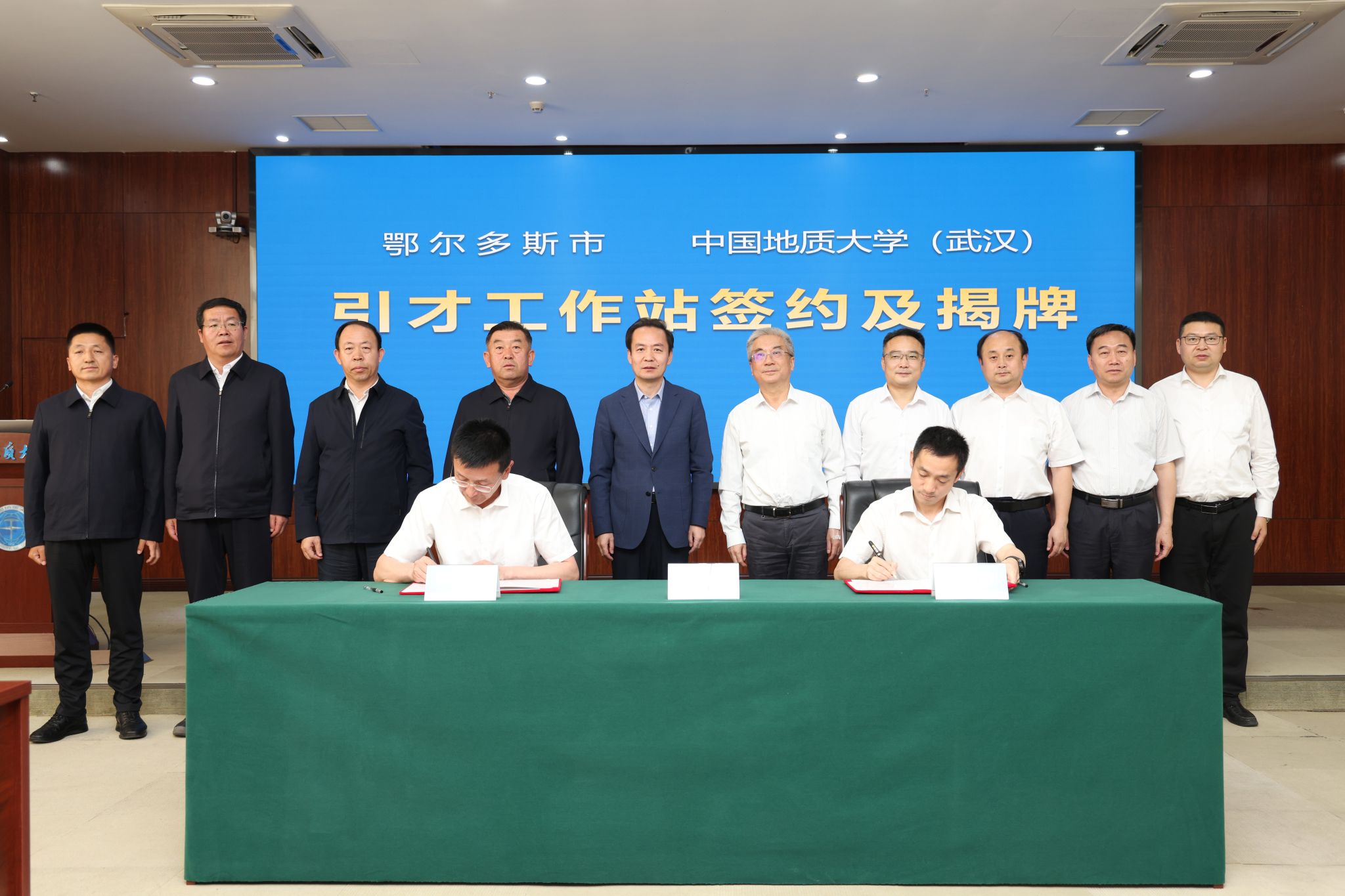 鄂尔多斯市人力资源和社会保障局局长苏日嘎拉图、opta足球学生就业指导处处长吴堂高,代表双方签署引才工作站协议。