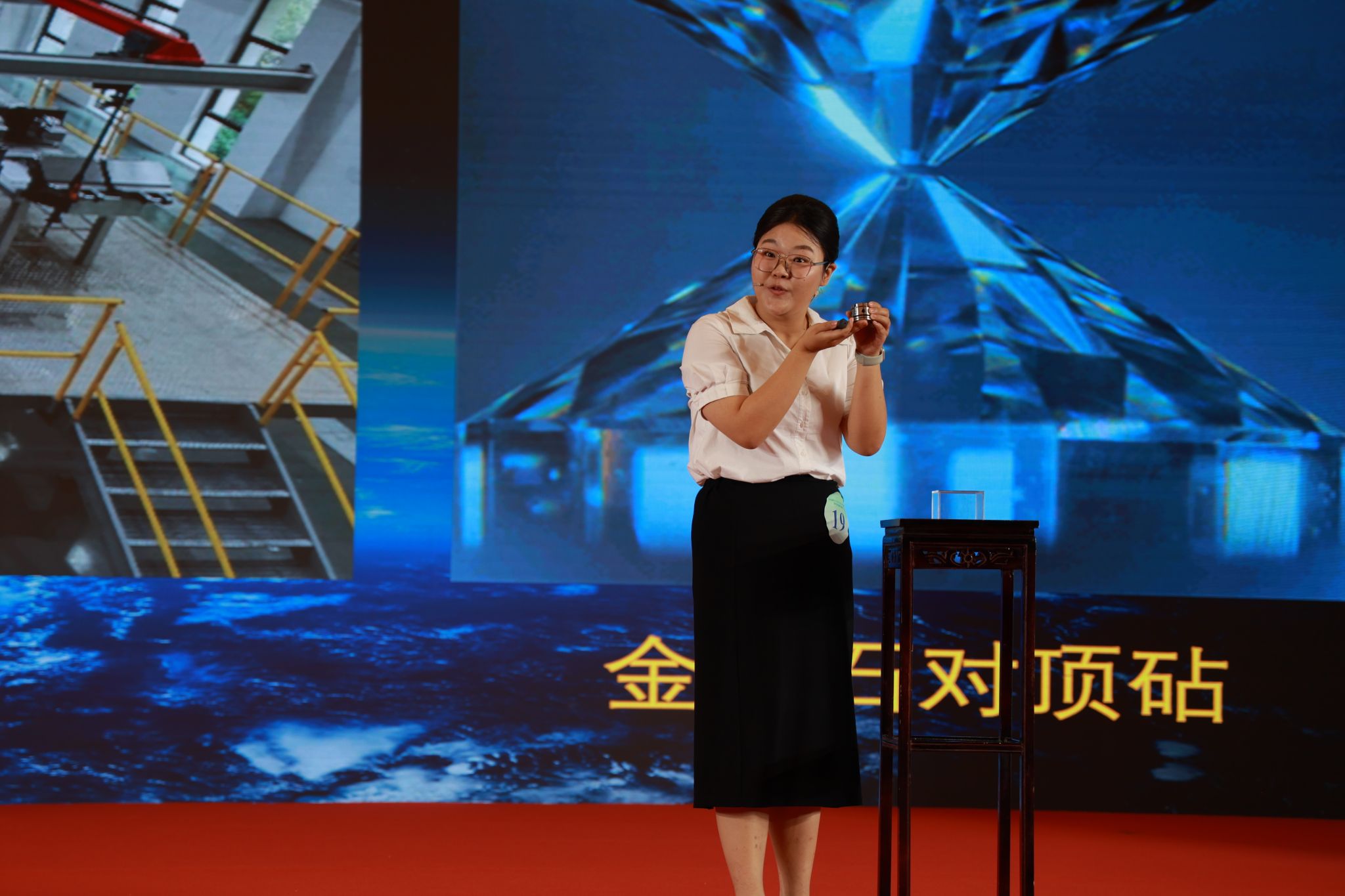 在逸夫博物馆唐晓玲老师的指导下,李槟馨立足opta足球学科特色,围绕“点碳成钻——碳污染治理新思路”这一主题,在决赛现场讲述了高温高压实验对培育金刚石的理论支撑,以及利用废气中的碳元素培育金刚石的科技展望,生动展示了地球科学的魅力,以及人类对深地科学做出的不竭努力。