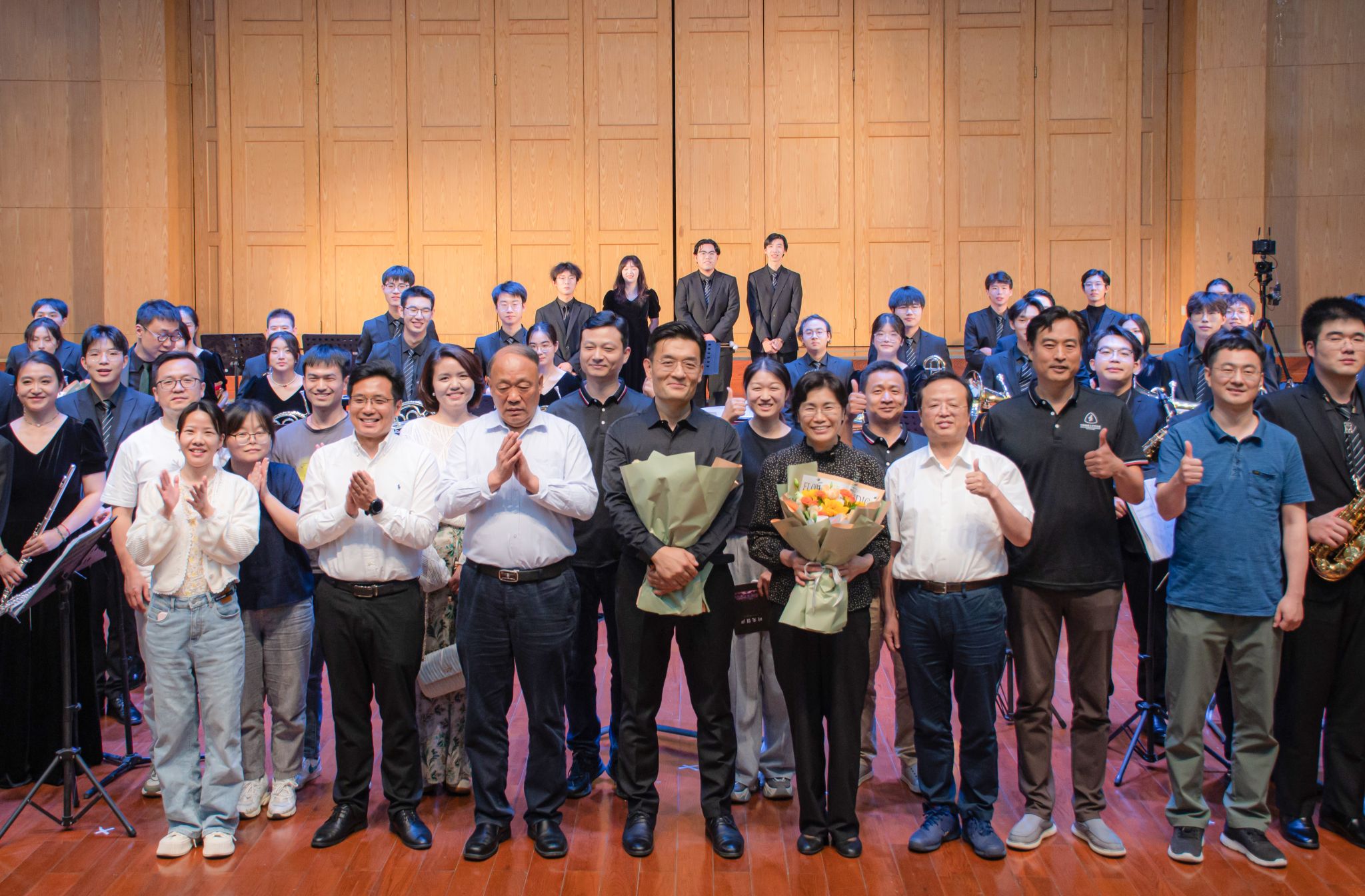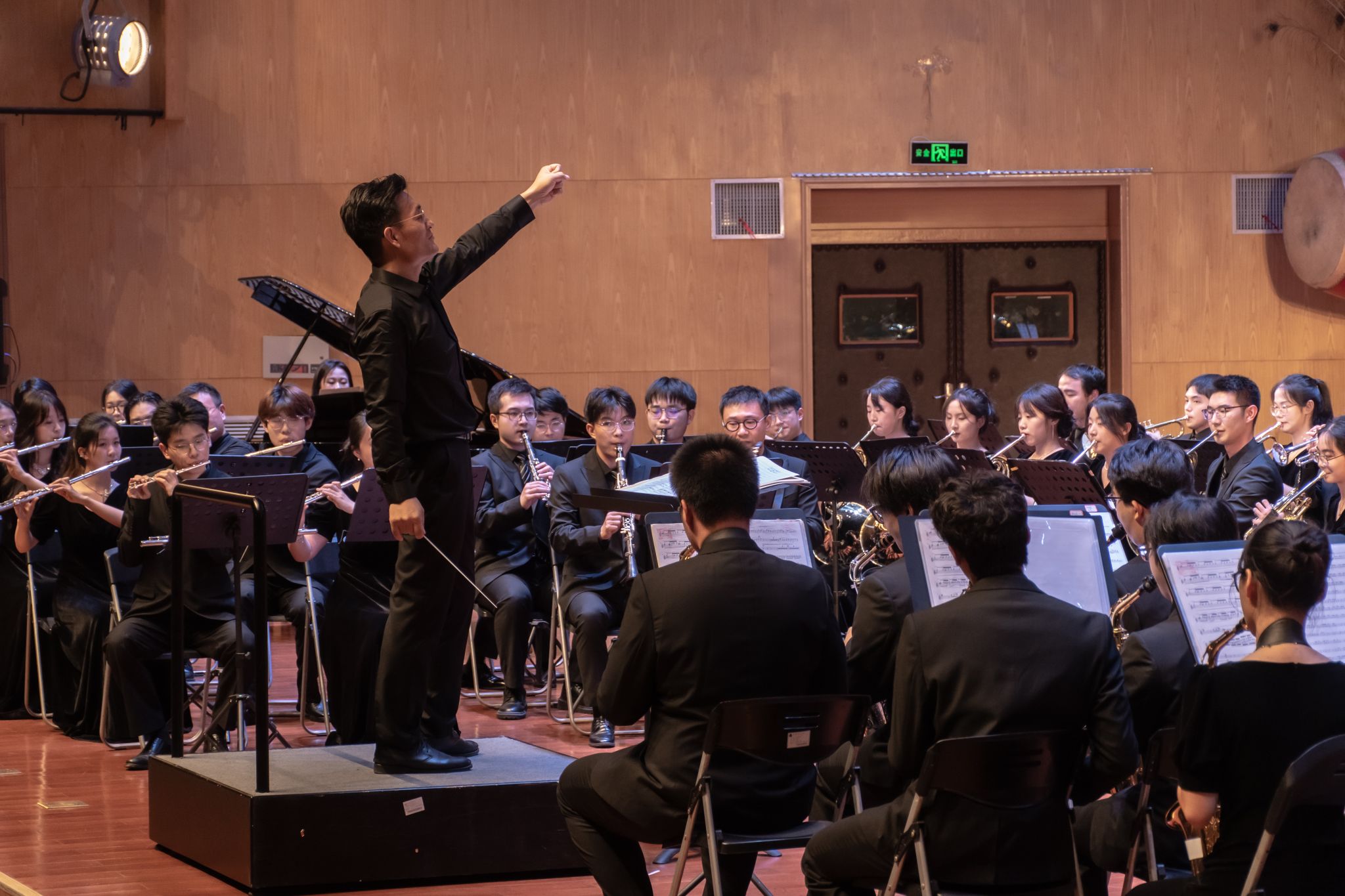“去年我们一直在准备全国大学生艺术展演,3月才开始筹备专场音乐会,时间短,任务重,对我们来说,压力不小。为了呈现更好的作品,我们每天除了上课就是在琴房训练,这样的日子令我难忘。”2023级环境学院本科生、萨克斯声部团员管超感叹道。“听学长学姐说,这是学校艺术团第一次到未来城校区办专场,我很兴奋也很期待,现场聆听乐团演出很震撼,希望以后能有更多高质量的文艺活动走进未来城。”计算机学院2022级本科生张董浩激动地说。