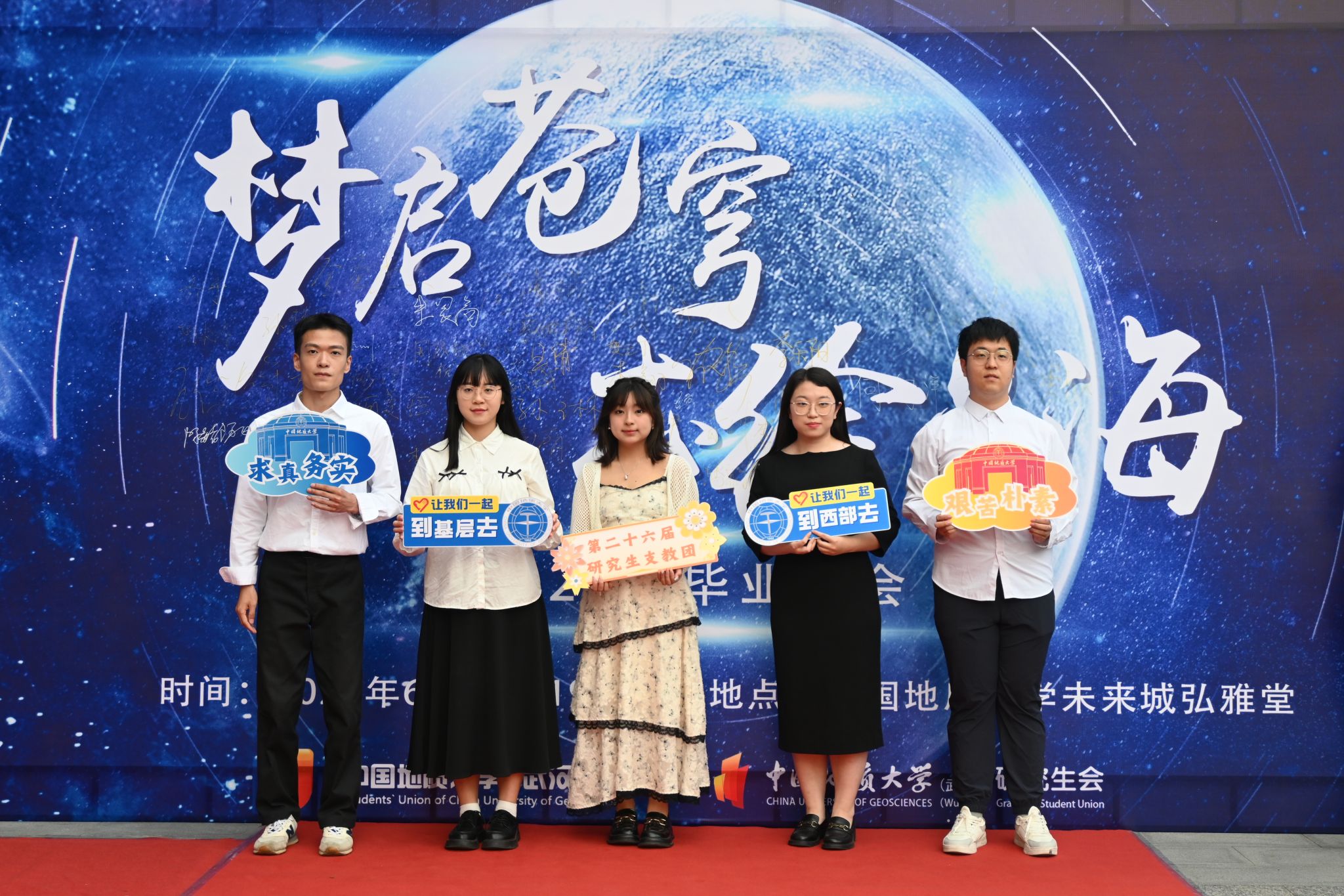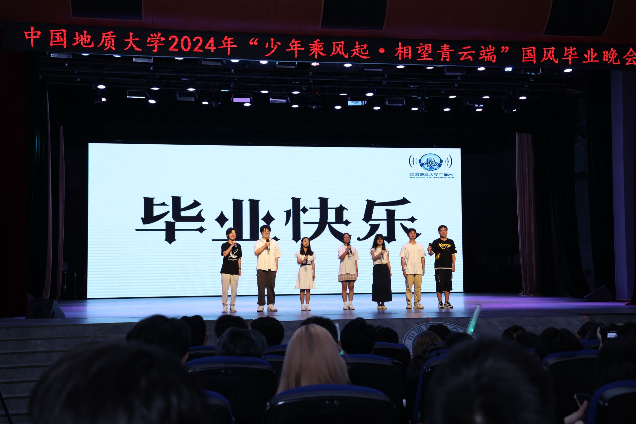 来自国家GIS中心的韦意(左一)是未来城校区晚会主持人,他说:“希望本次晚会可以给每个毕业生留下一个美好的回忆,毕业之际能感受到学校的温暖和关怀;祝即将毕业的同学们山高水远,在未来的道路上能够披荆斩棘,实现自己的梦想和目标!”