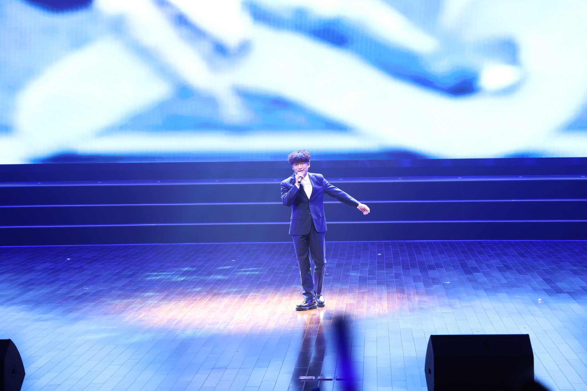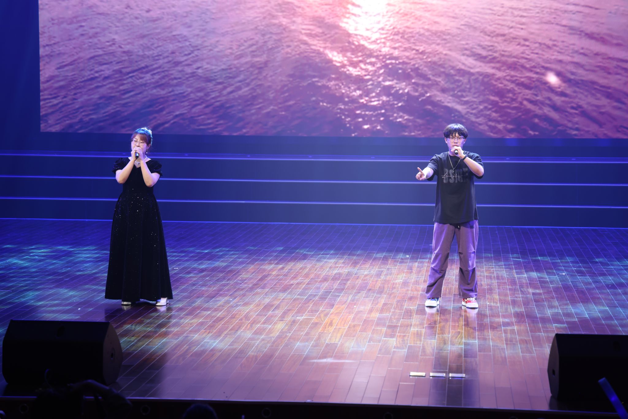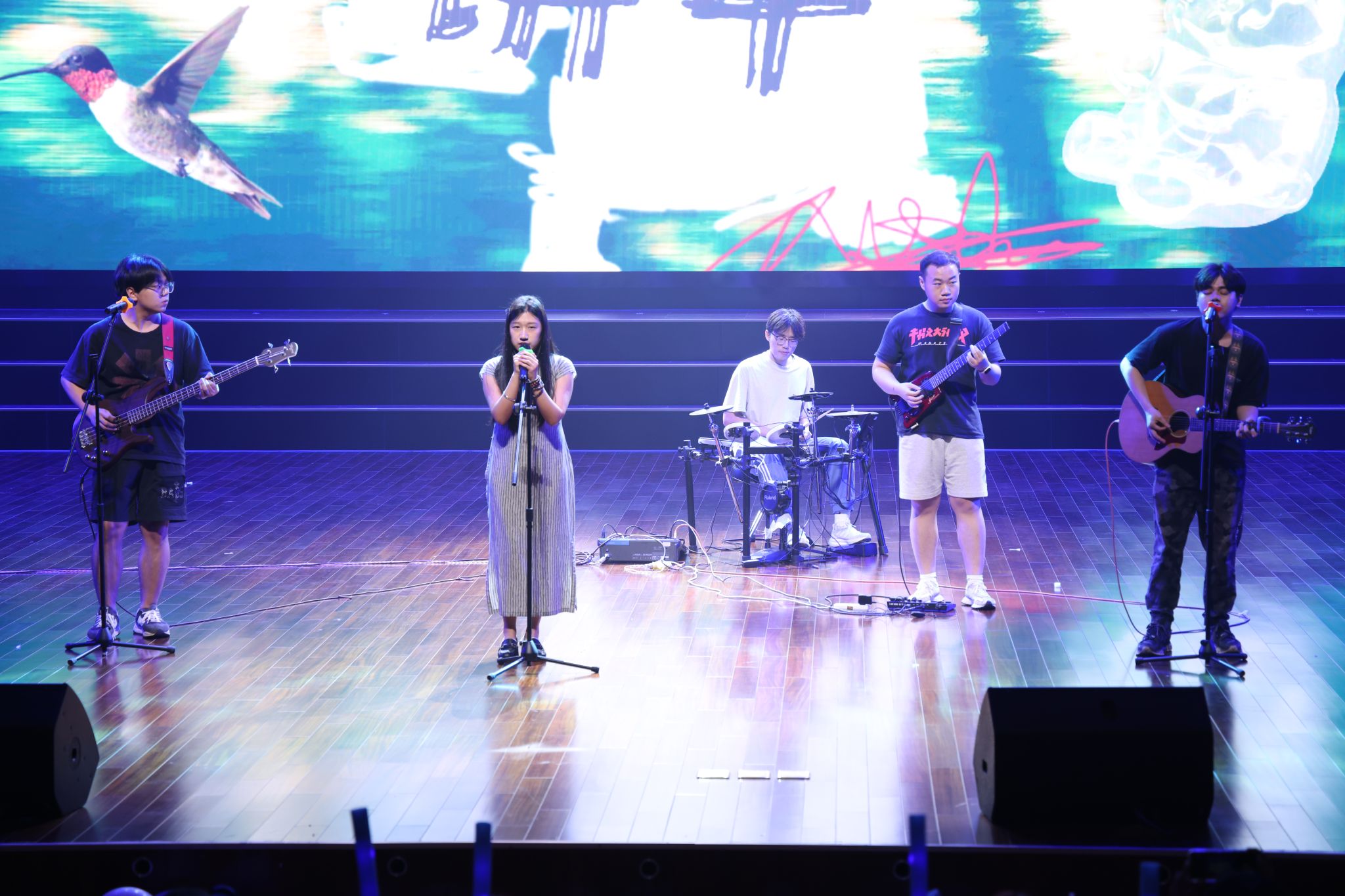 校园十佳歌手王梓同学演绎歌曲《江南》,音乐的旋律在夜空中流淌,如同一泓清泉,带领着观众回忆起在校园中度过的岁月。