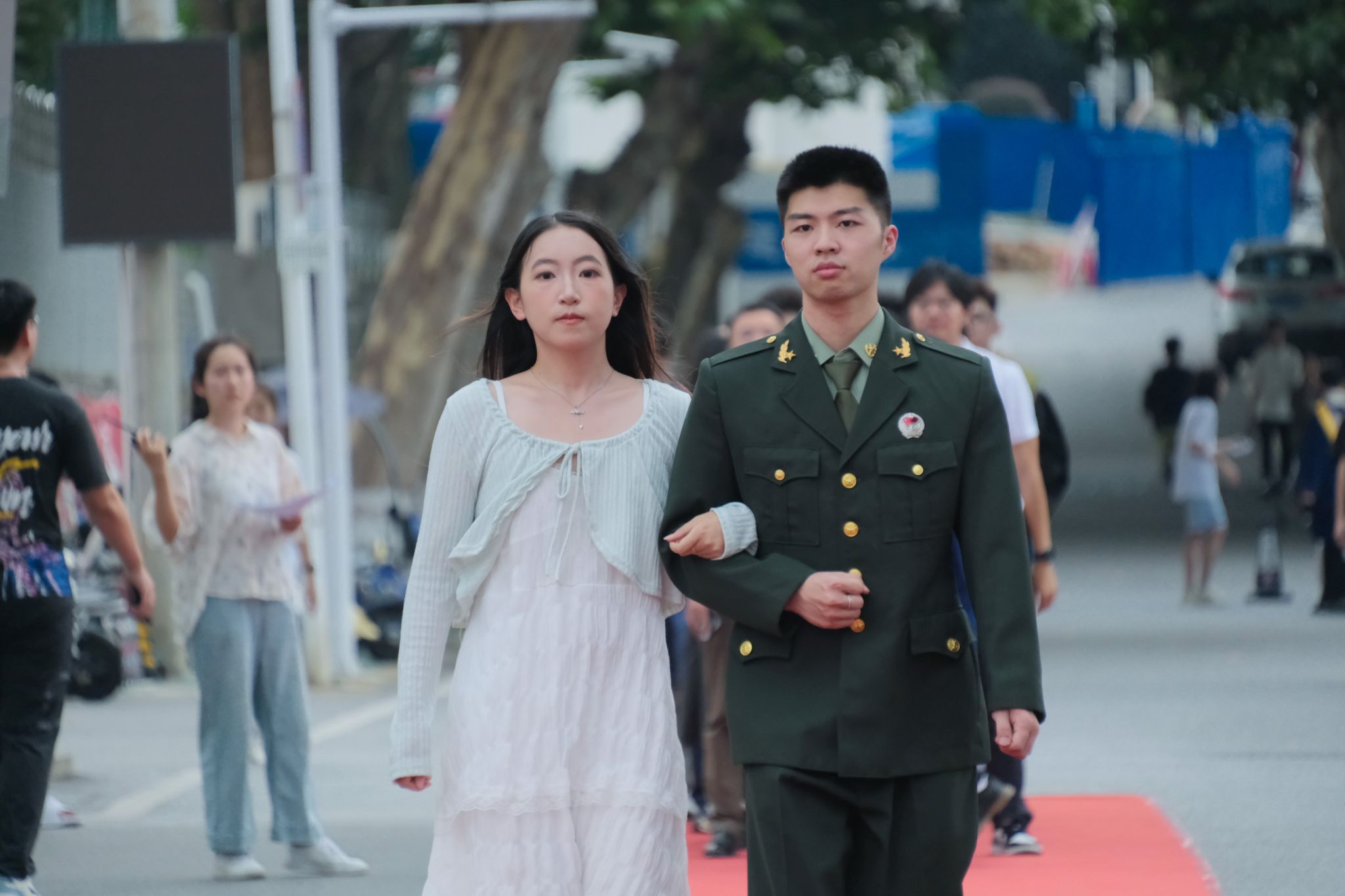 工程学院本科毕业生徐一帆说,两年军旅生活令他难忘,故今天选择绿色军装参加毕业红毯,他勇敢克服复学压力,潜心学习,实现本硕博连读,他想对学弟学妹说,“尽管去努力,幸运总会来临。”