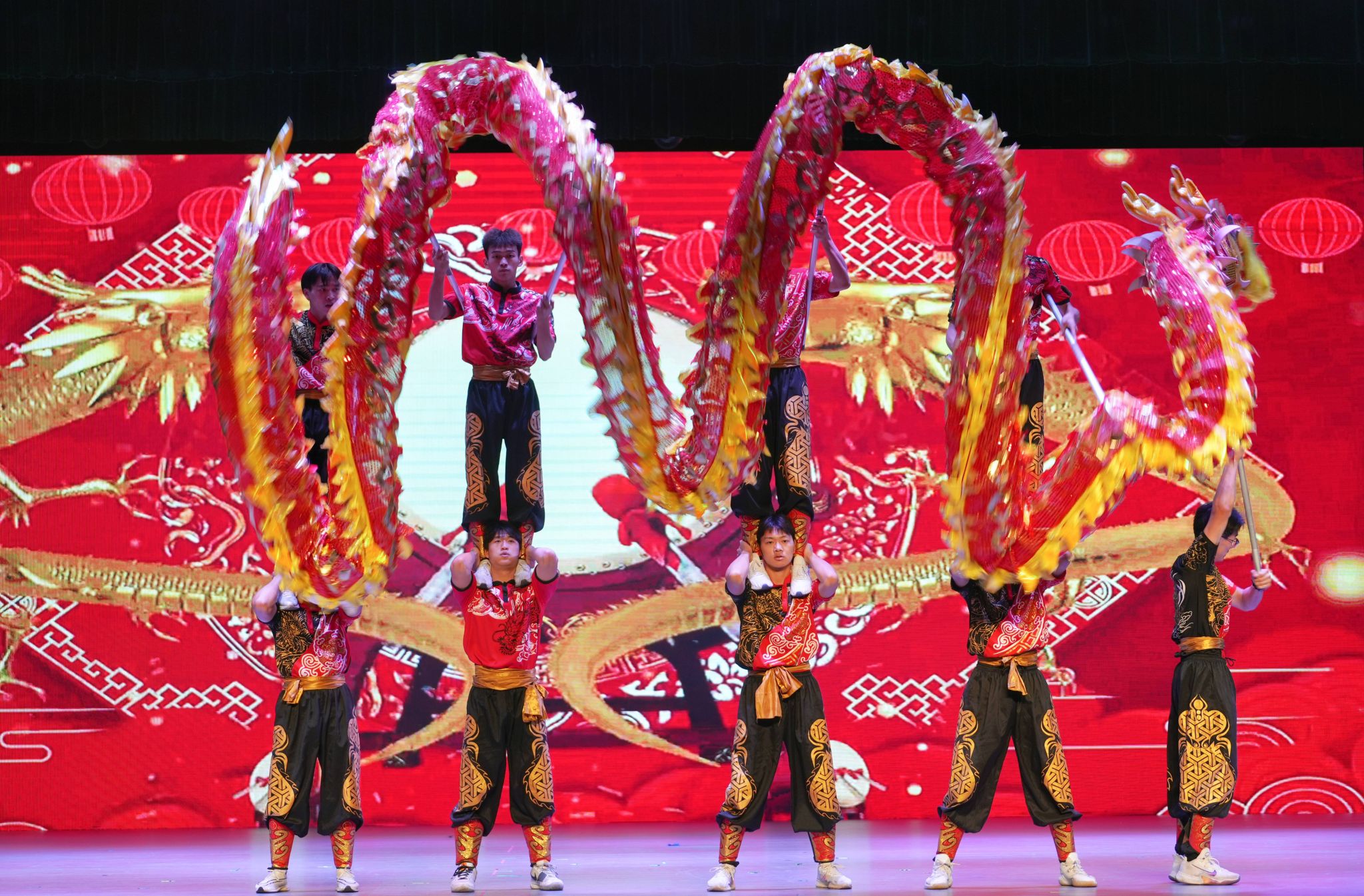 大学生龙狮团带来的《龙腾虎跃》一出场便收获满堂喝彩,龙舞影动、威武无畏,悠悠龙吟、华夏文脉,表演者一举一动中赋予龙狮强盛的生命力,气氛亢奋激昂,掌声连绵不断。