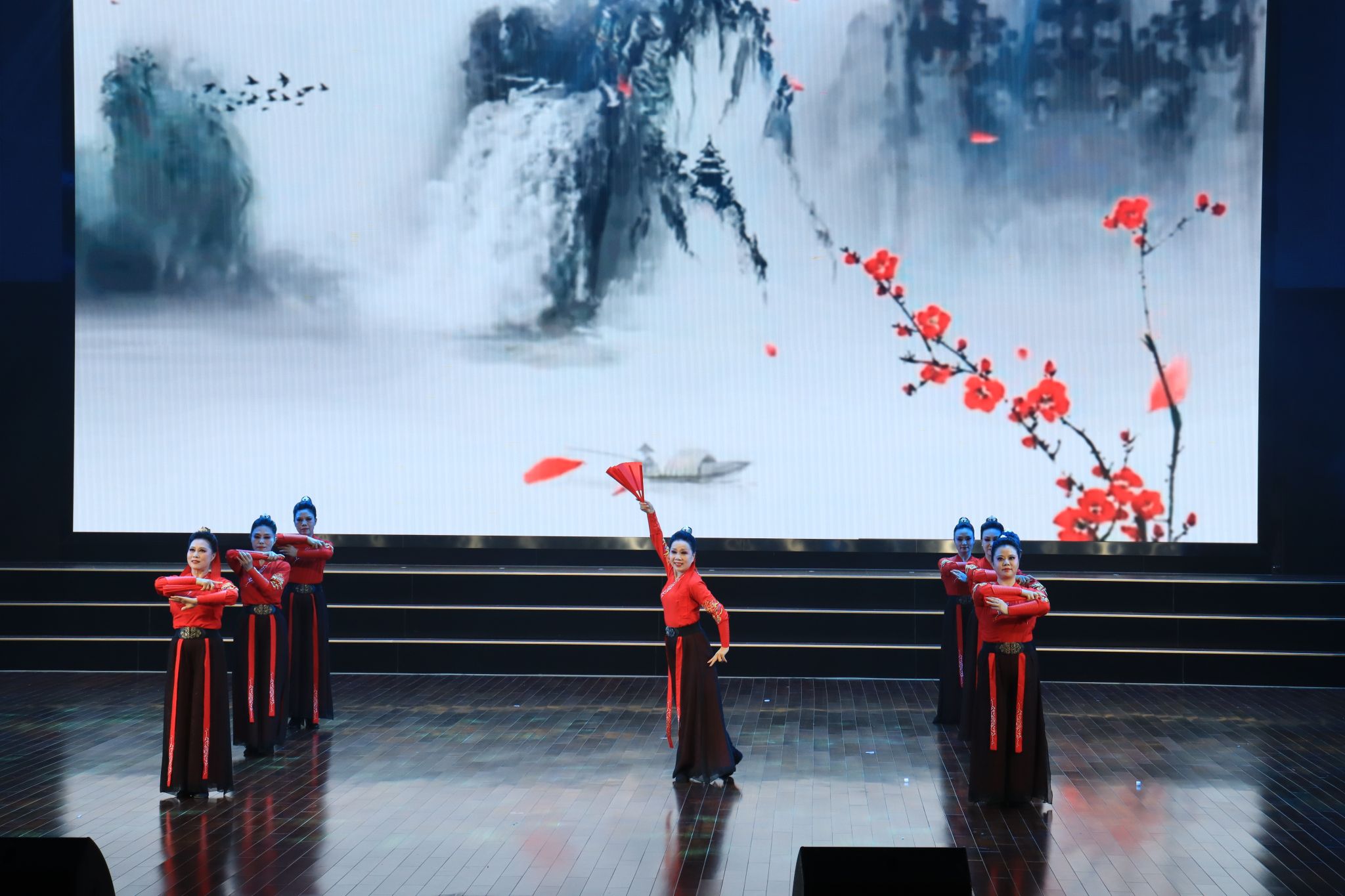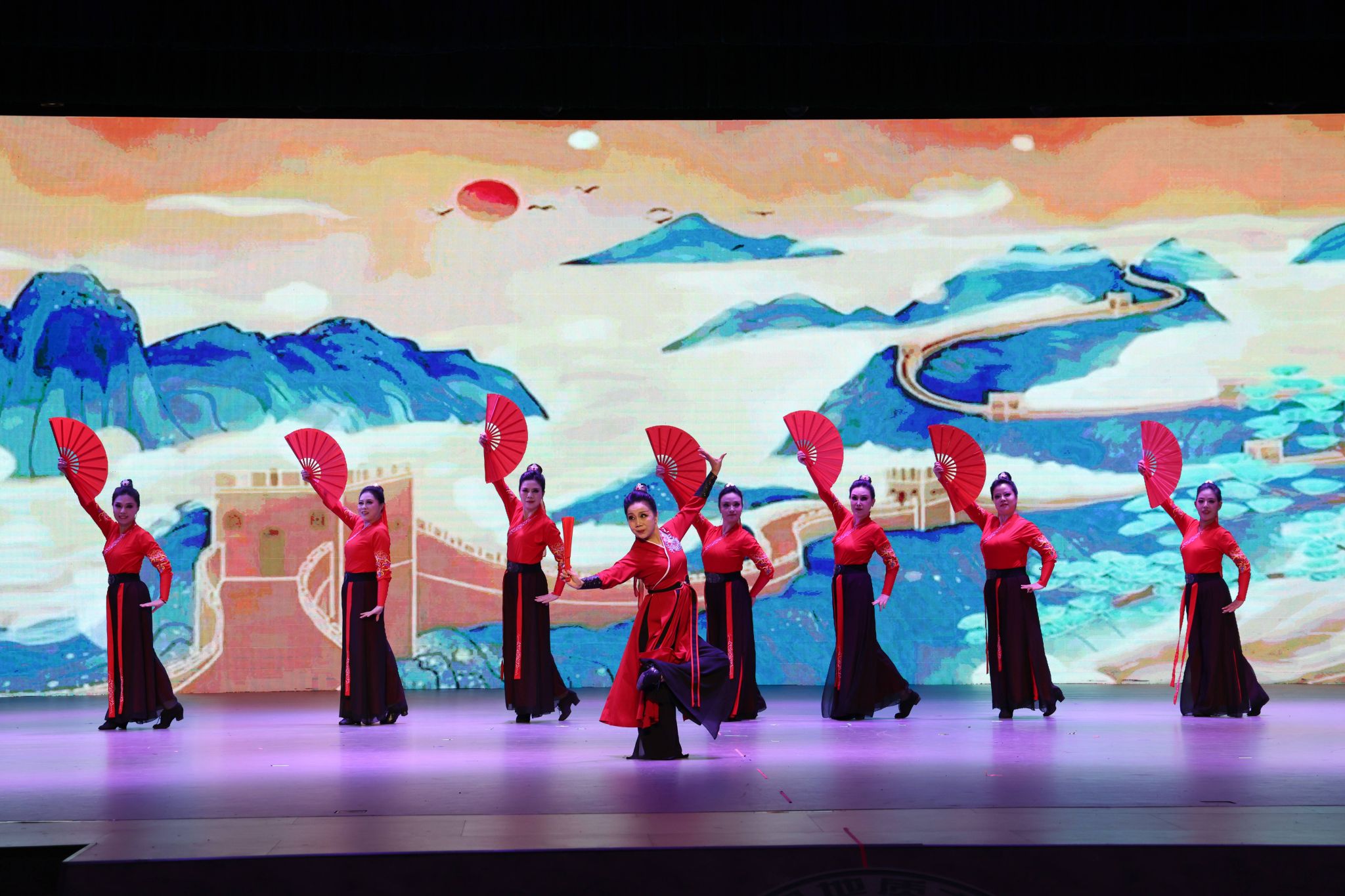 红宝石舞蹈协会的《雪龙吟》带来一场视觉盛宴,折扇于收放间展现力量,舞者于动作中呈现美感,既柔又刚,既轻又韧,整齐划一的舞步下呈现出中华国风之美。