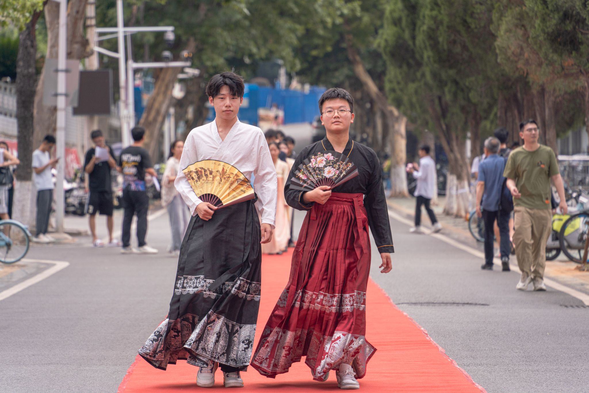 毕业生们盛装出席,踏上红毯,自信地招手,坚定地签名。