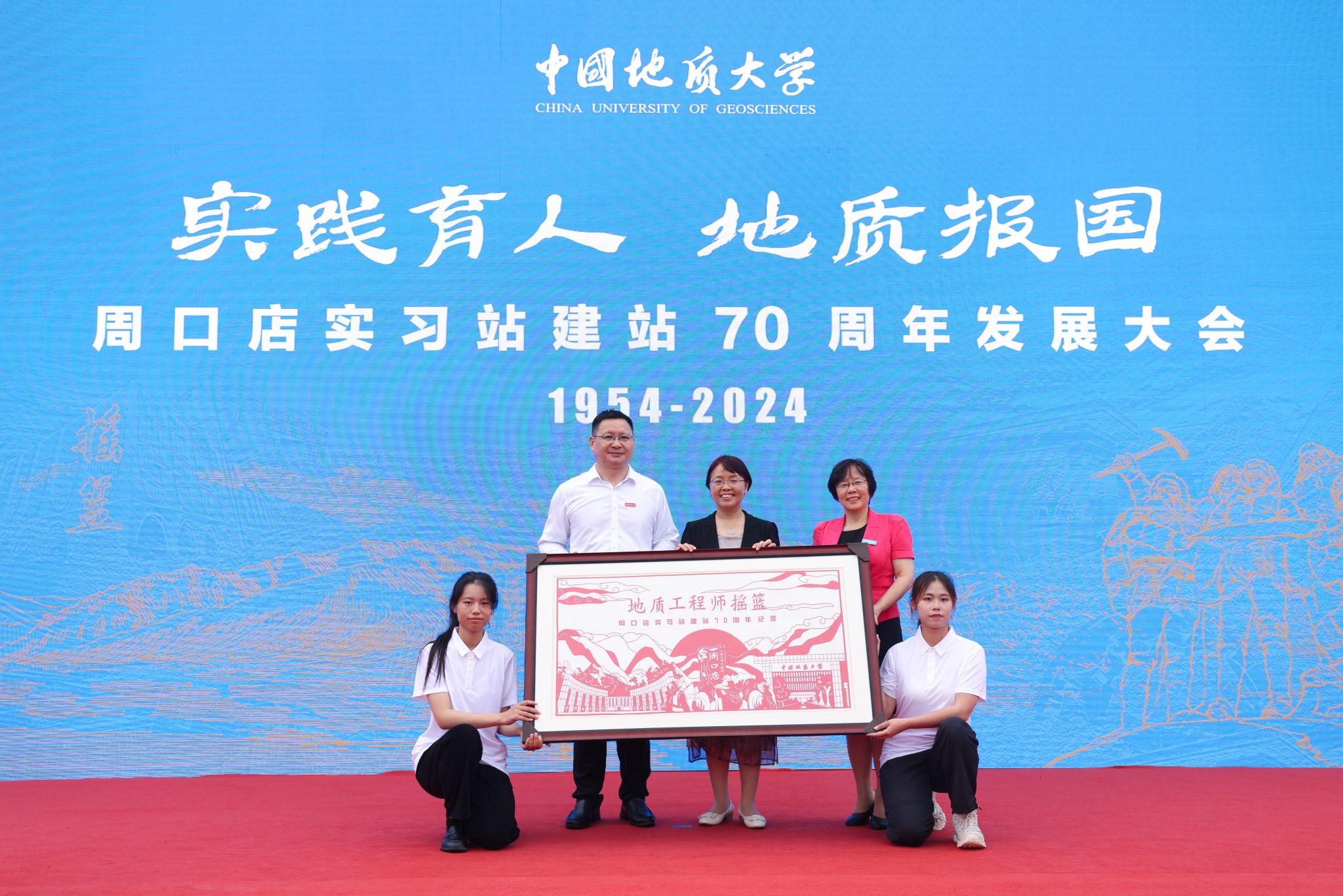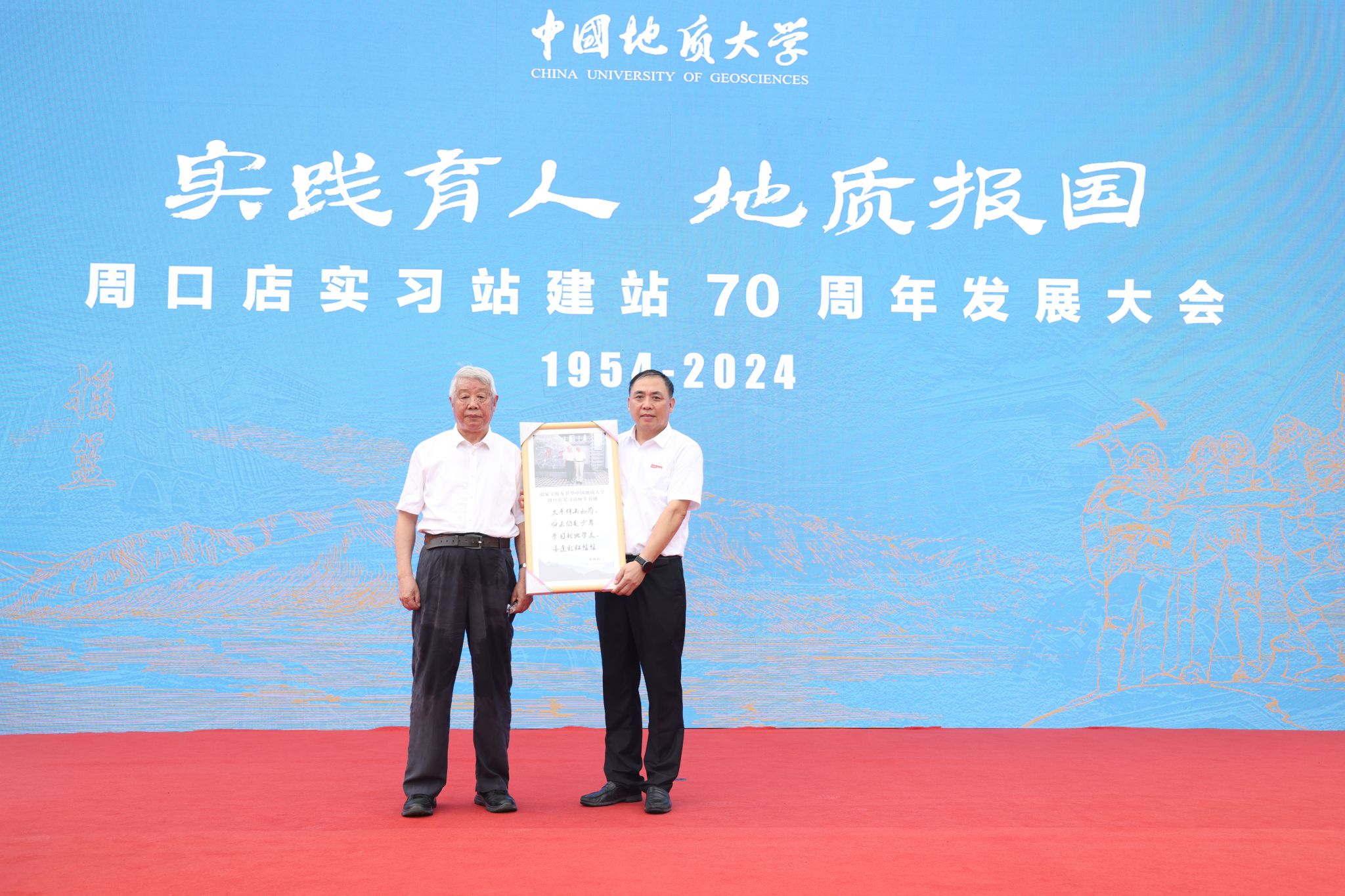 中科院院士金振民向周口店实习站赠予纪念品。“太平群山如前,归来仍是少年。”金振民院士分享他曾在周口店写下的诗。他深情回忆他与周口店的故事:“我就是周口店实习摇篮里‘摇’出来的。只要人类还存在,只要人类发展进步,地球科学是不会枯竭的。同学们要建立信心,热爱自己的事业,为祖国的地质工作作出更大的贡献。”
