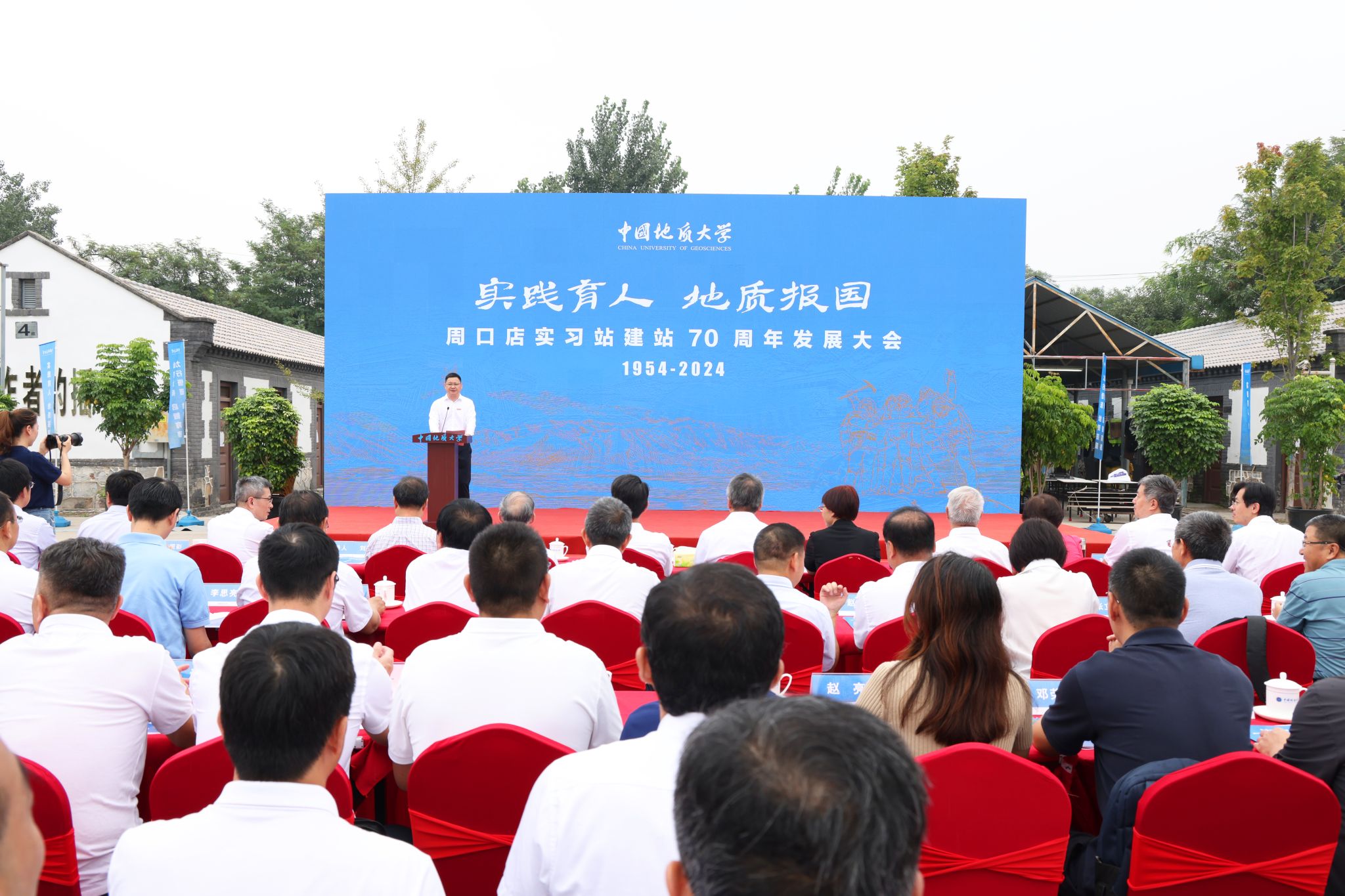 他深情回顾了周口店实习站建站70年来的不凡历程,取得的突出成绩。他说,野外实践教学是地质教育和地学人才培养不可或缺的关键环节,重视实践教学是学校始终坚持的优良传统,也是学校人才培养的特色和优势。七十年前,老一辈地质学家和地质教育家在周口店建起了我国首个野外实习站,开创了新中国地学实践教学和国家急需人才培养之先河。七十年来,周口店实习站作为言传身教、因材施教、教学相长的育人场所,培养了一大批国之栋梁和行业英才,被誉为地质工作者的摇篮;周口店实习站始终坚持理论与实践相结合,教学与科研相融合,结出了实践教学改革创新的累累硕果。