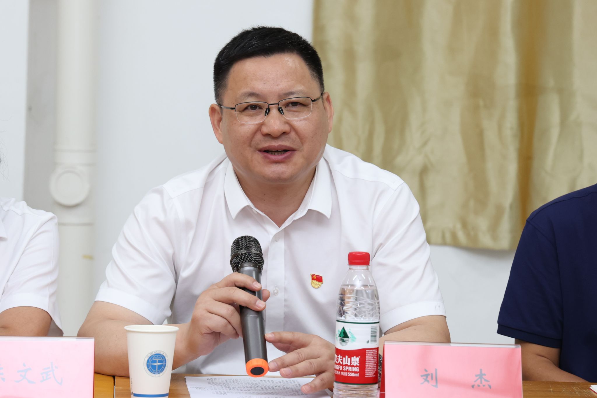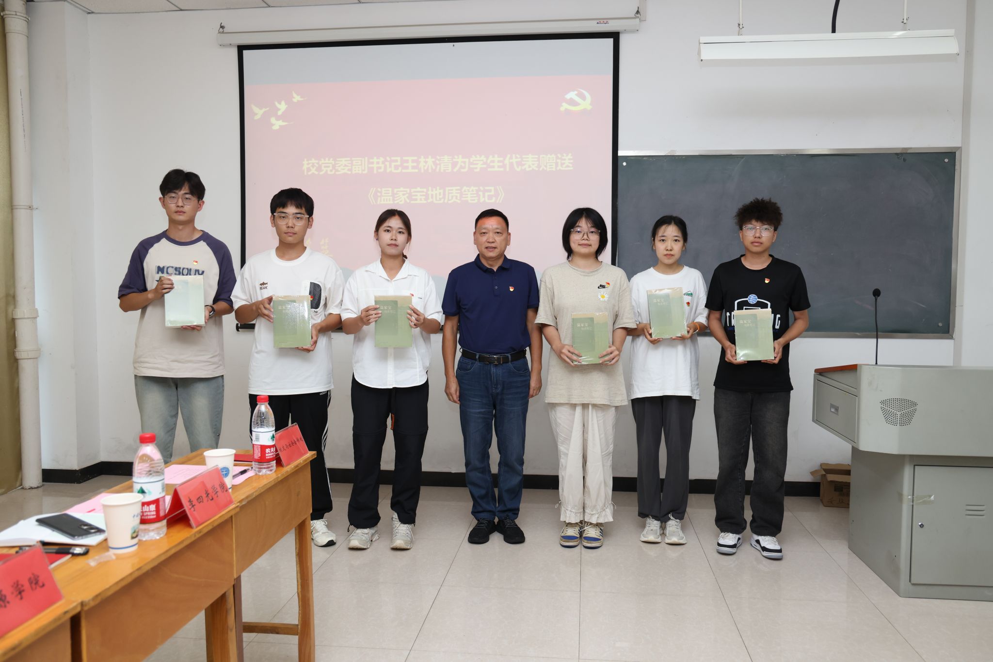 在主题党日现场,王林清为学生党员代表赠送《温家宝地质笔记》。