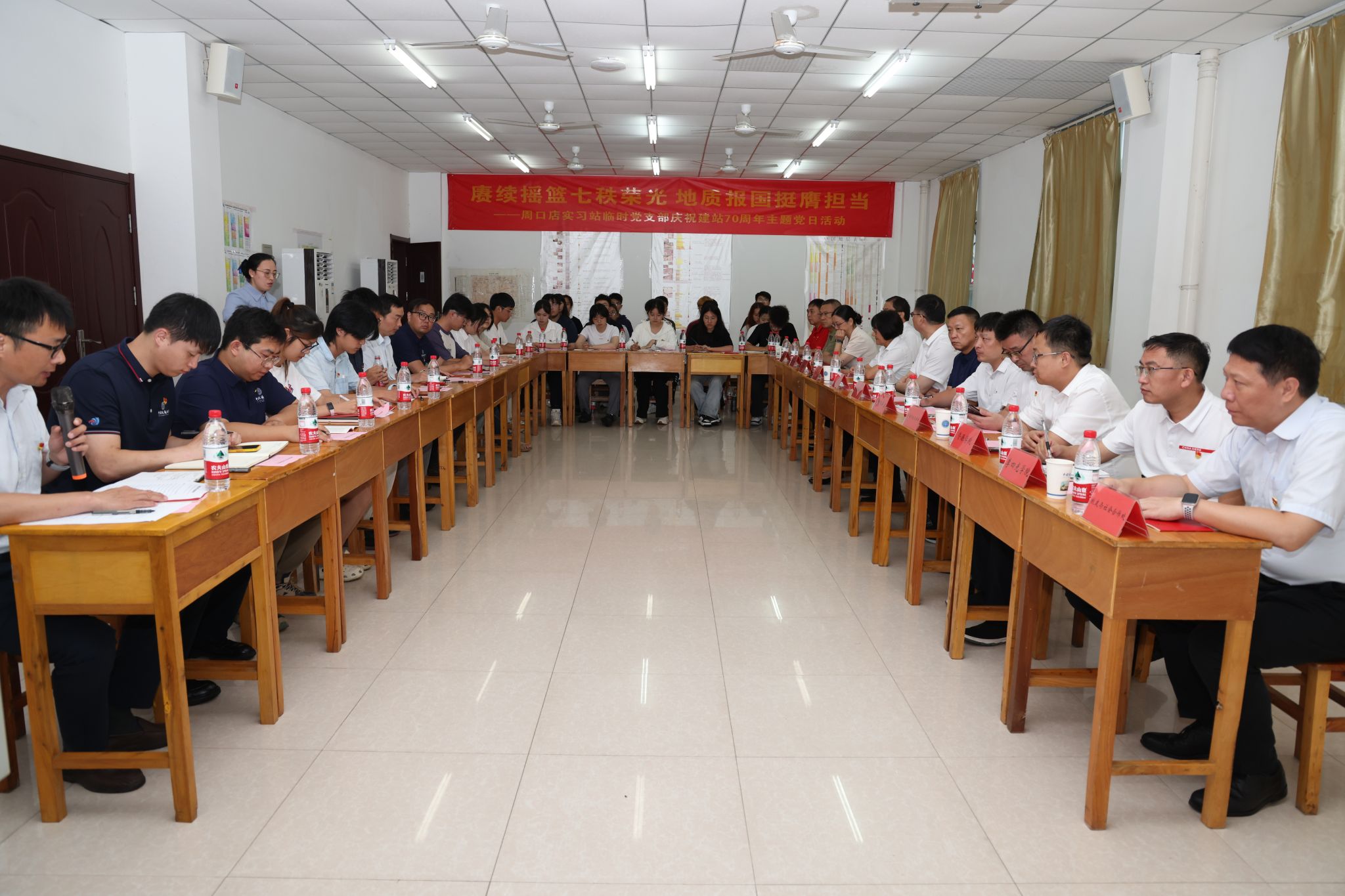 临时党支部书记王国庆主持主题党日活动,并介绍了周口店实习基地建站70年来的发展历史。