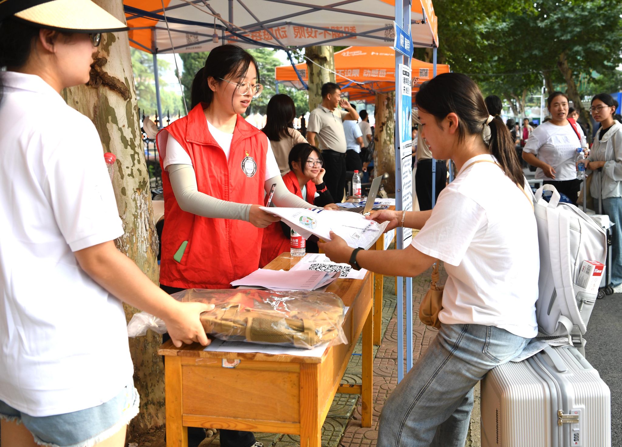 校园里,学生志愿者、后勤、保卫工作人员,为萌新们提供周到服务。大家不辞辛苦指挥交通、搬运行李,引导新生办入学手续、办理入住,带着大家熟悉校园的角落。