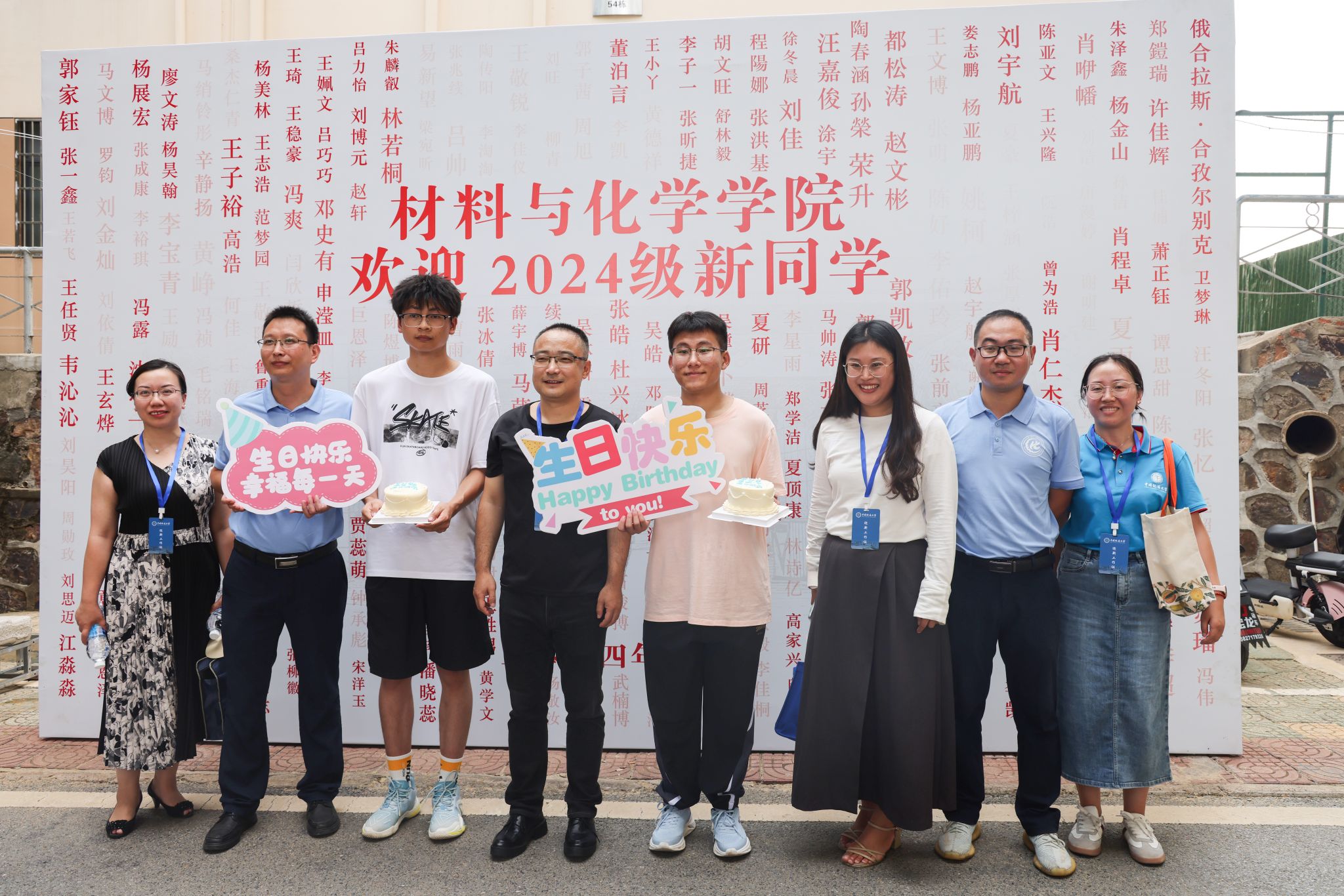 报到期间,材料与化学学院2024级本科新生李义飞、孟智瑞迎来生日,两人分别来自山东和甘肃。他们表示,下车就在车站遇到了学校热心的迎新志愿者,乘坐学校大巴来到报到点,学院辅导员已经为他们准备好了生日贺卡和小蛋糕。李义飞说,虽然过来路途辛苦,但是志愿者和老师们的热情周到让他感到很开心。孟智瑞的父母也对学校的精心准备表示感谢,希望孩子在大学里不断进步成才。