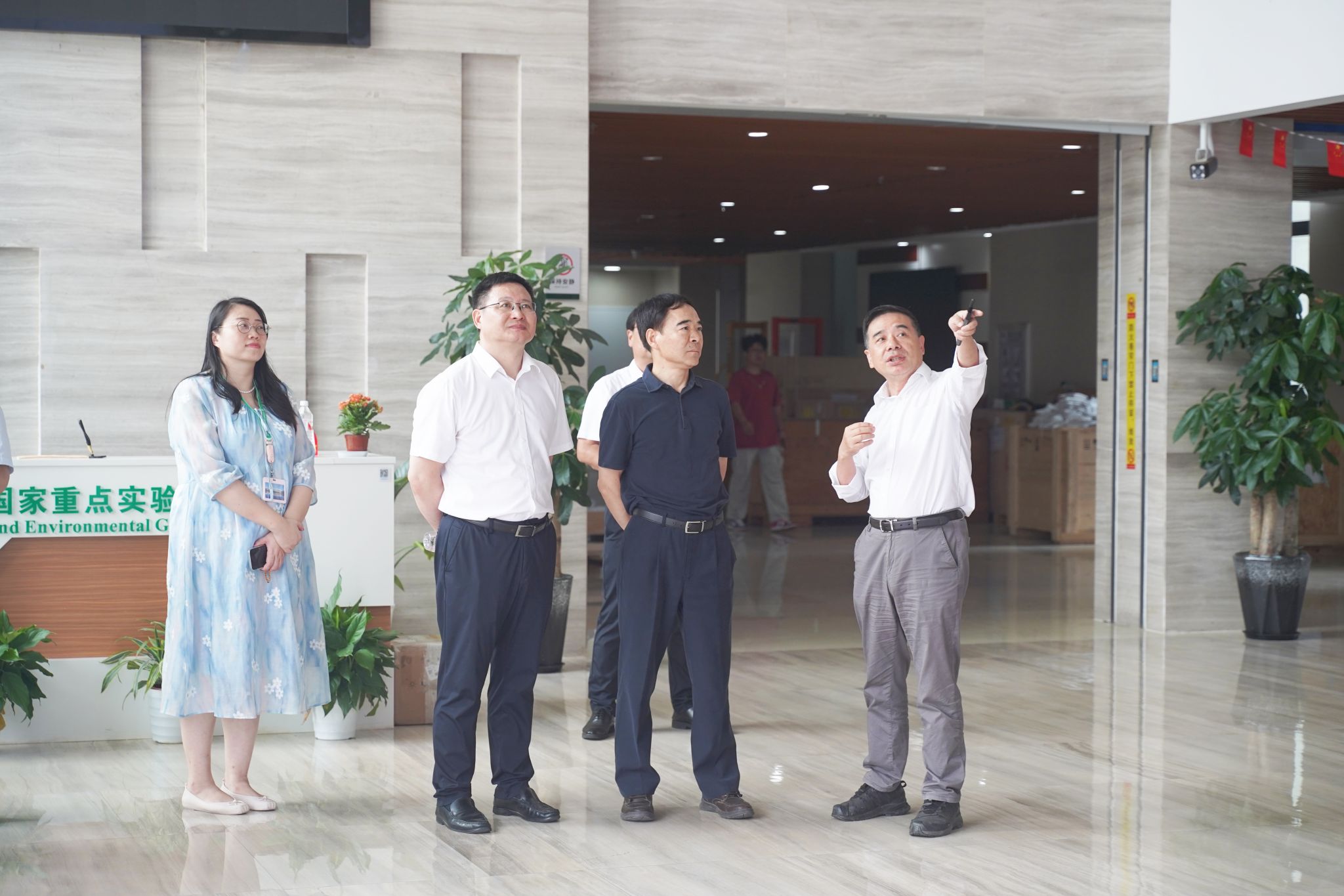 田福元、邓立红一行参观了校区整体建设、运行情况。在生物地质与环境地质国家重点实验室,实验室副主任陈中强教授介绍了实验室的基本情况、定位和目标、承担的重大任务、标志性成果、研究队伍与平台建设等。