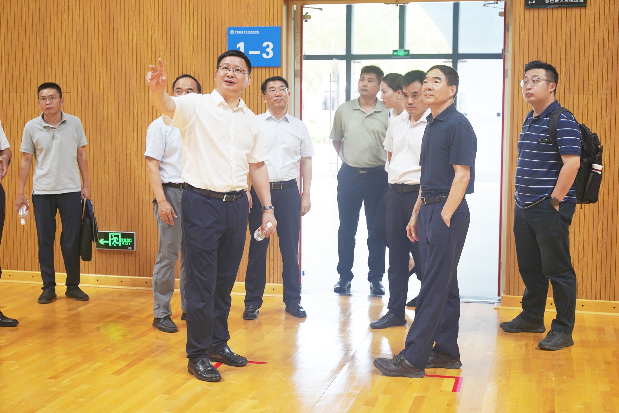随后,调研组一行来到未来城校区体育中心,对室内高水平篮球馆、游泳馆等区域进行实地走访,深入了解功能、配置等具体情况。
