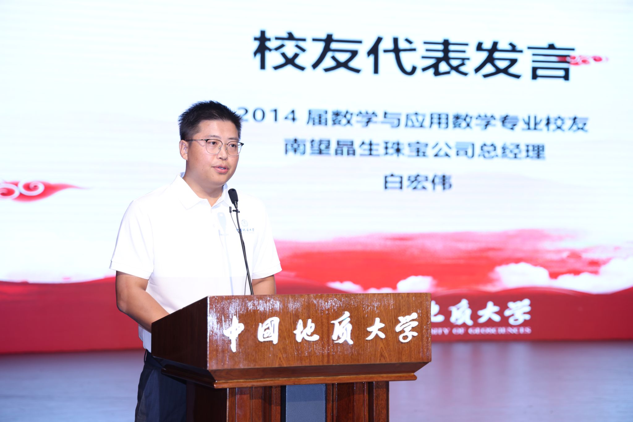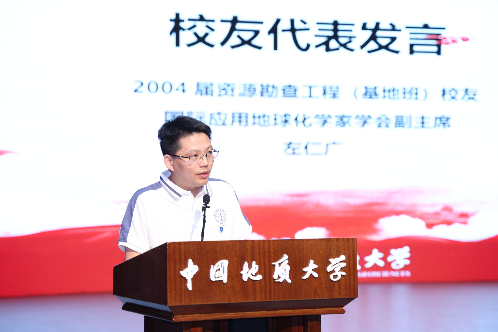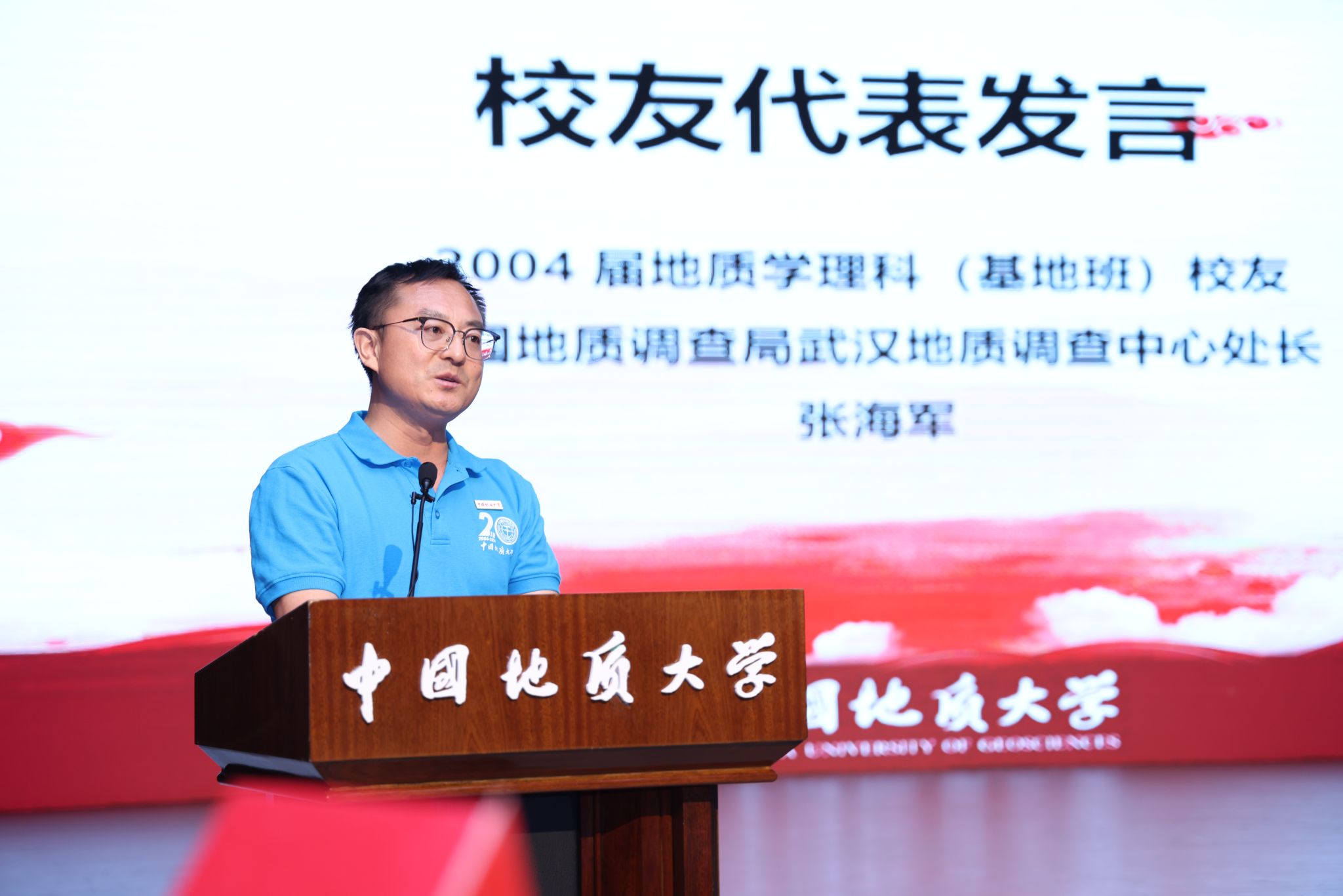 2004届地质学专业校友、中国地质调查局武汉地质调查中心处长张海军表示,毕业二十周年的校友是校友的中坚力量,承担着承上启下的重要作用。他分享了自己的求学之路和工作历程,在西部计划、驻村扶贫中贡献力量,他用实际行动诠释着校训“艰苦朴素 求真务实”的深刻内涵。